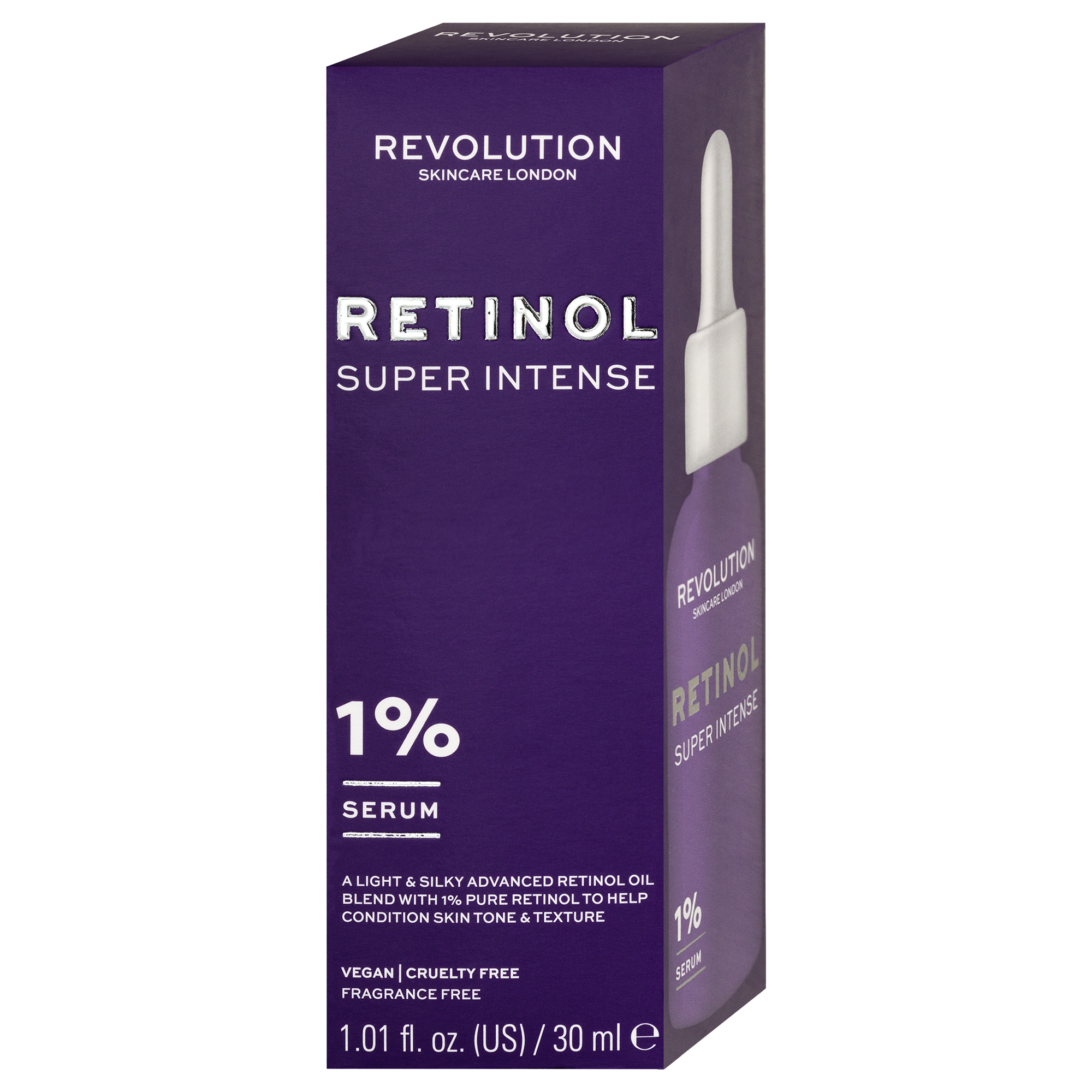 Obejdi věk s Revolution Skincare 1% Retinol Super Intense sérem, které je odborně formulováno tak, aby pomáhalo redukovat vzhled jemných linek, vrásek a nerovnoměrného tónu a textury pleti. Sérum 1% Retinol Super Intense Retinol – urychluje obnovu buněk, snižuje výskyt tmavých pigmentových skvrn a pomáhá eliminovat jemné linky a vrásky.