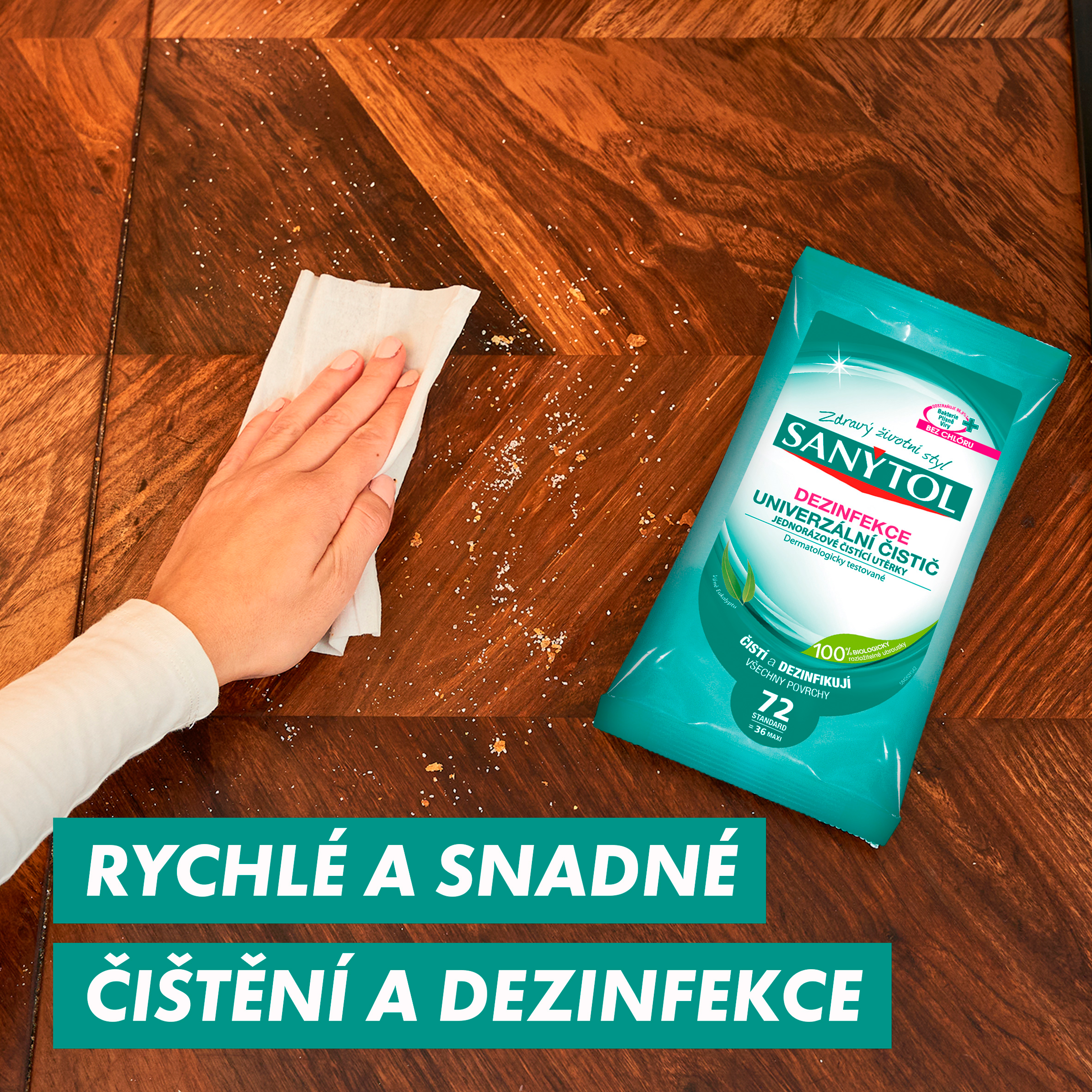 Vlastnosti univerzálních čisticích utěrek Sanytol: