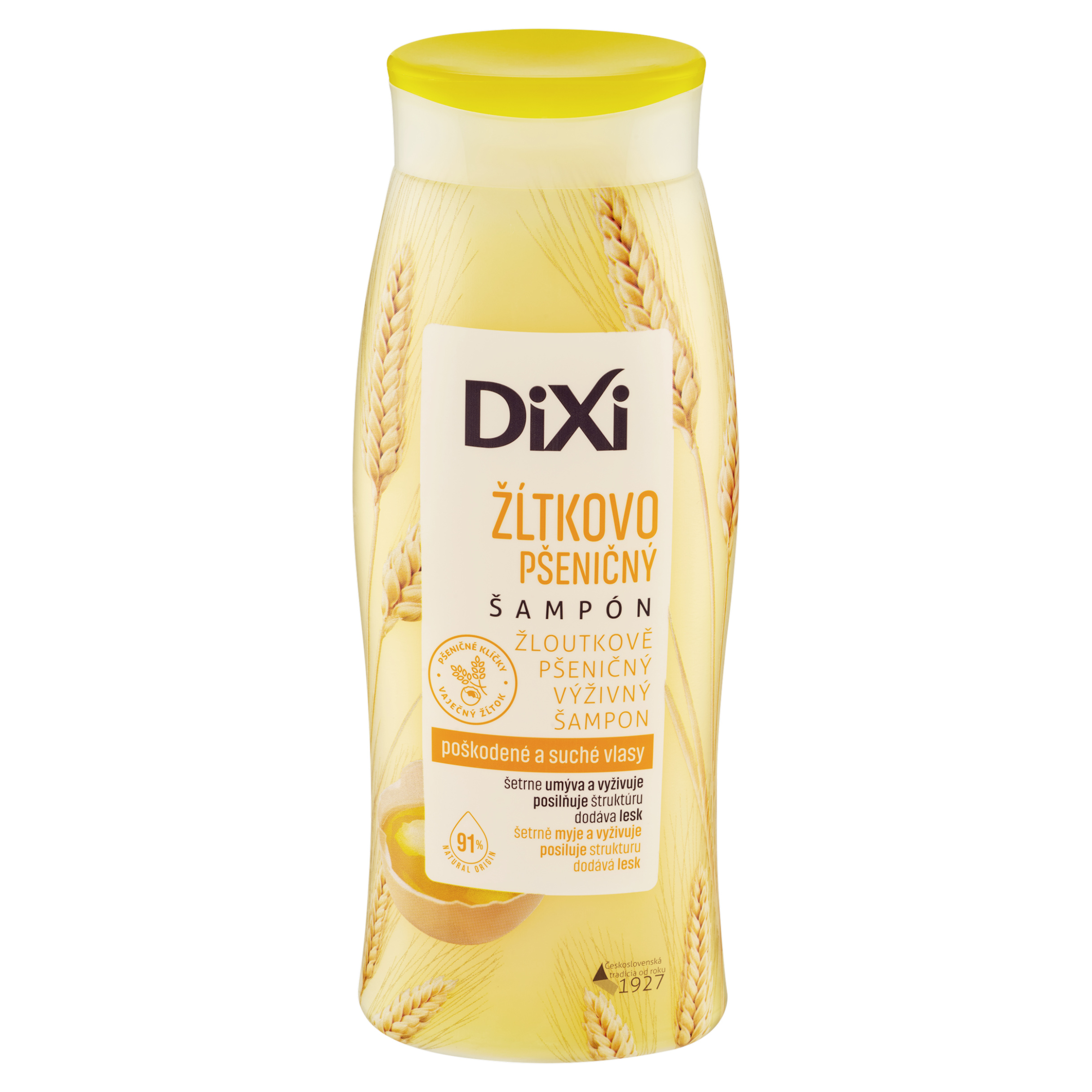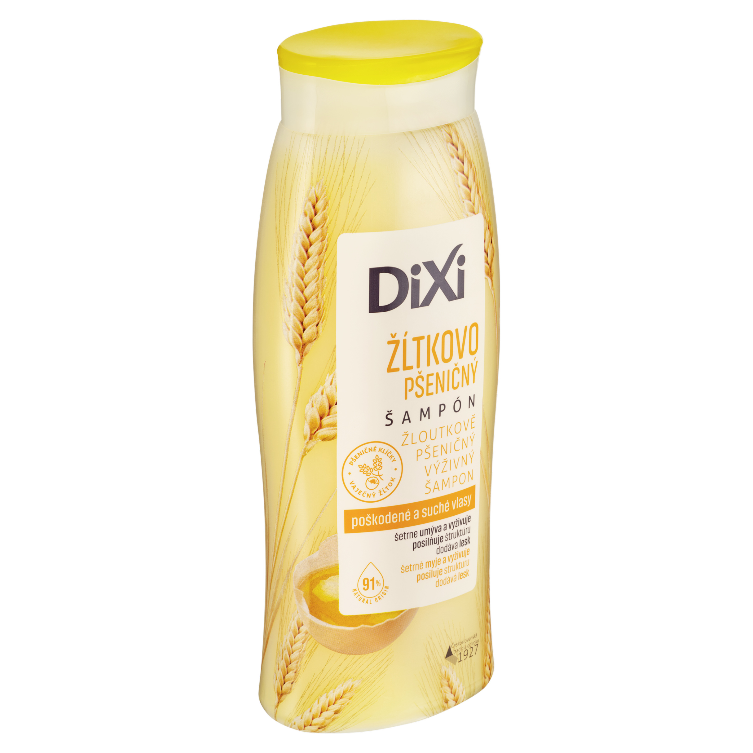Dixi žloutkově-pšeničný výživný šampon pro poškozené, suché a namáhané vlasy. Vlasy jemně myje a napomáhá udržovat jejich zdravý vzhled. Obsahuje 91% složek přírodního původu.