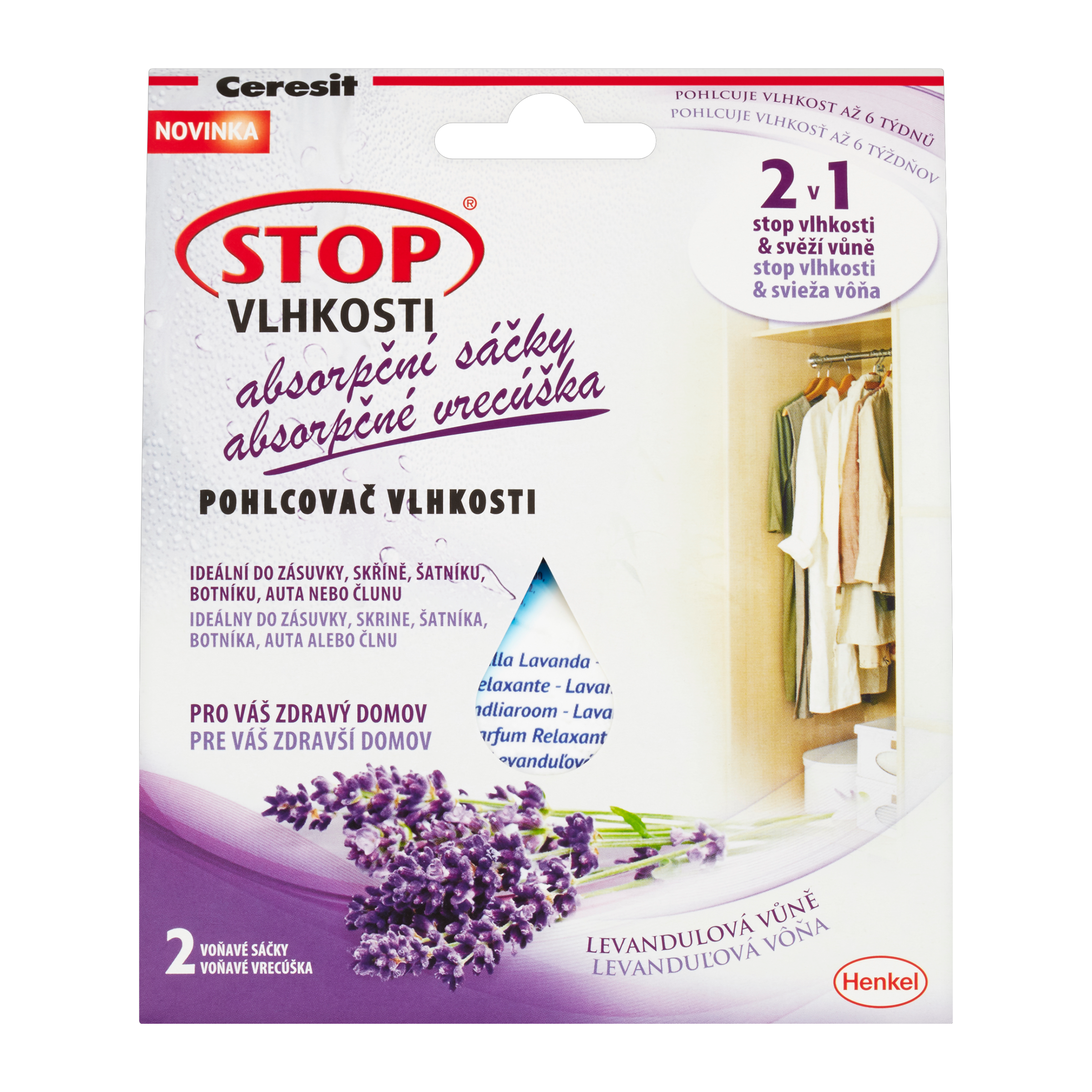Vlastnosti sáčků do skříně pohlcujících vlhkost Ceresit: