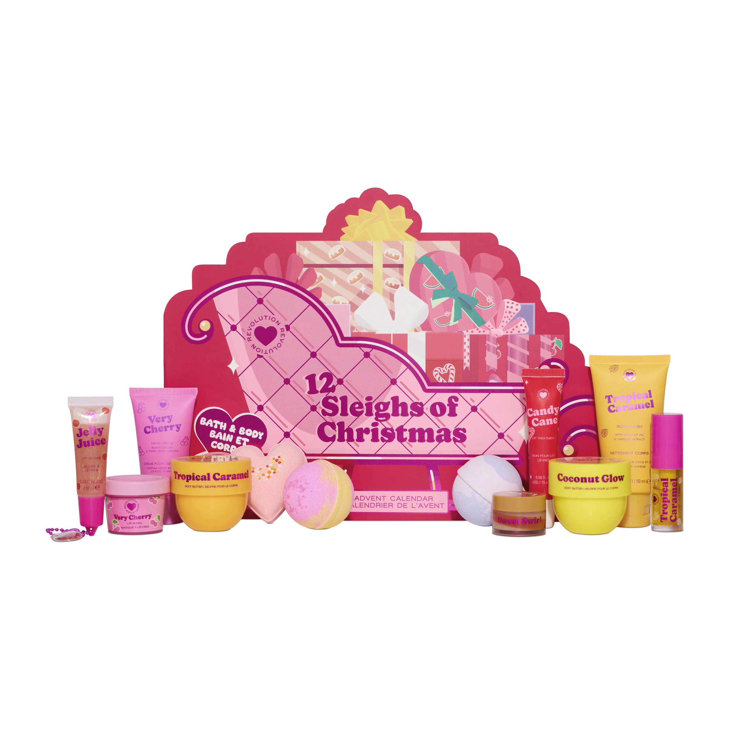 Připravte se zazářit ve sváteční sezóně s nejroztomilejším kosmetickým adventním kalendářem! I Heart Revolution 12 Sleighs of Christmas Advent Calendar je plný kosmetických, koupelových a pečujících překvapení, díky nimž budete zářit od hlavy až po špičky u nohou. Těšte se na šumivé koupelové bomby, nadýchaná tělová másla, vyživující masky na rty a mnoho dalšího – dokonalý způsob, jak dodat svému adventnímu odpočítávání sladký nádech.