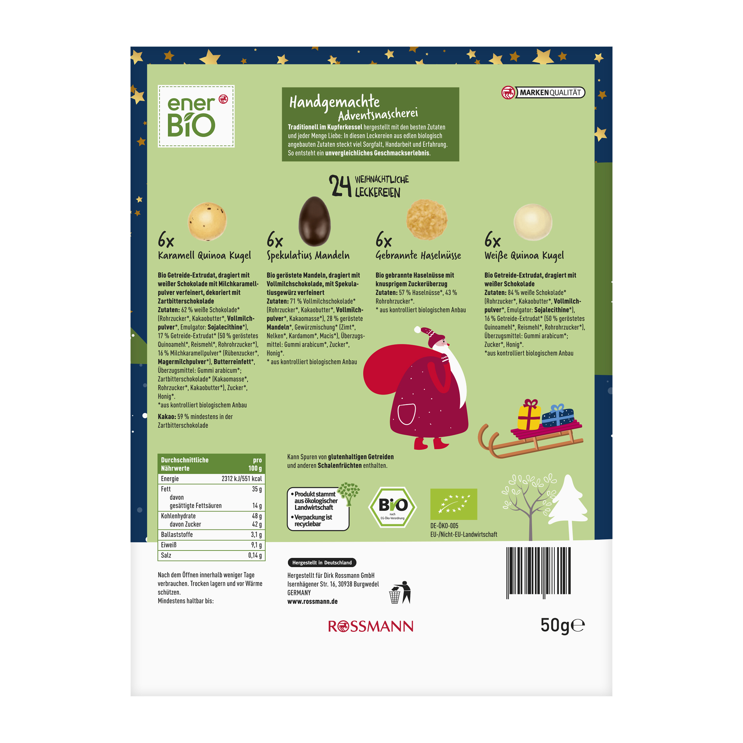 Zkraťte si čekání na Vánoce! S každým okénkem přichází jedna sladká malá dobrota. Čokoládový kuličkový adventní kalendář enerBiO je ideálním dárkem pro malé, ale i velké mlsouny!