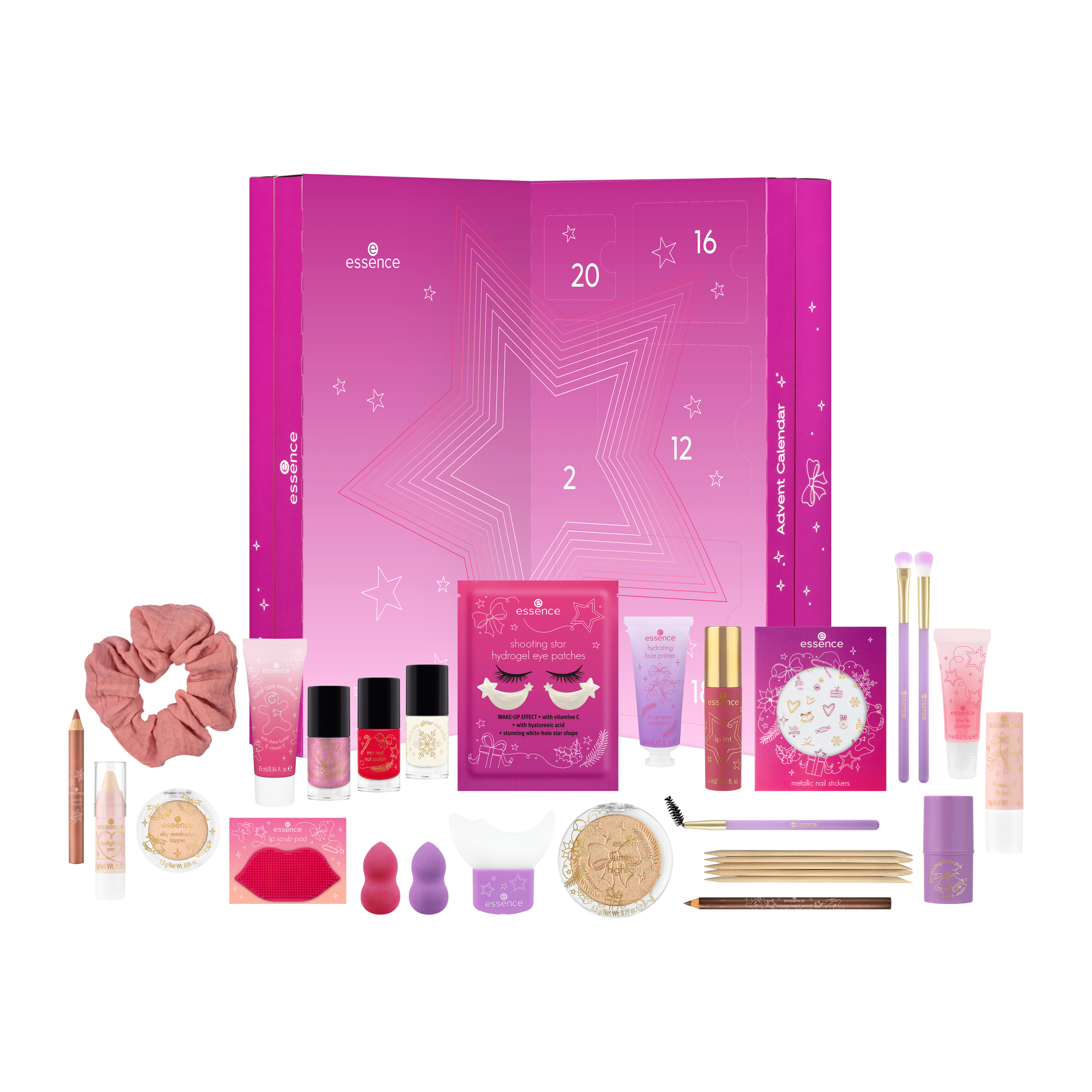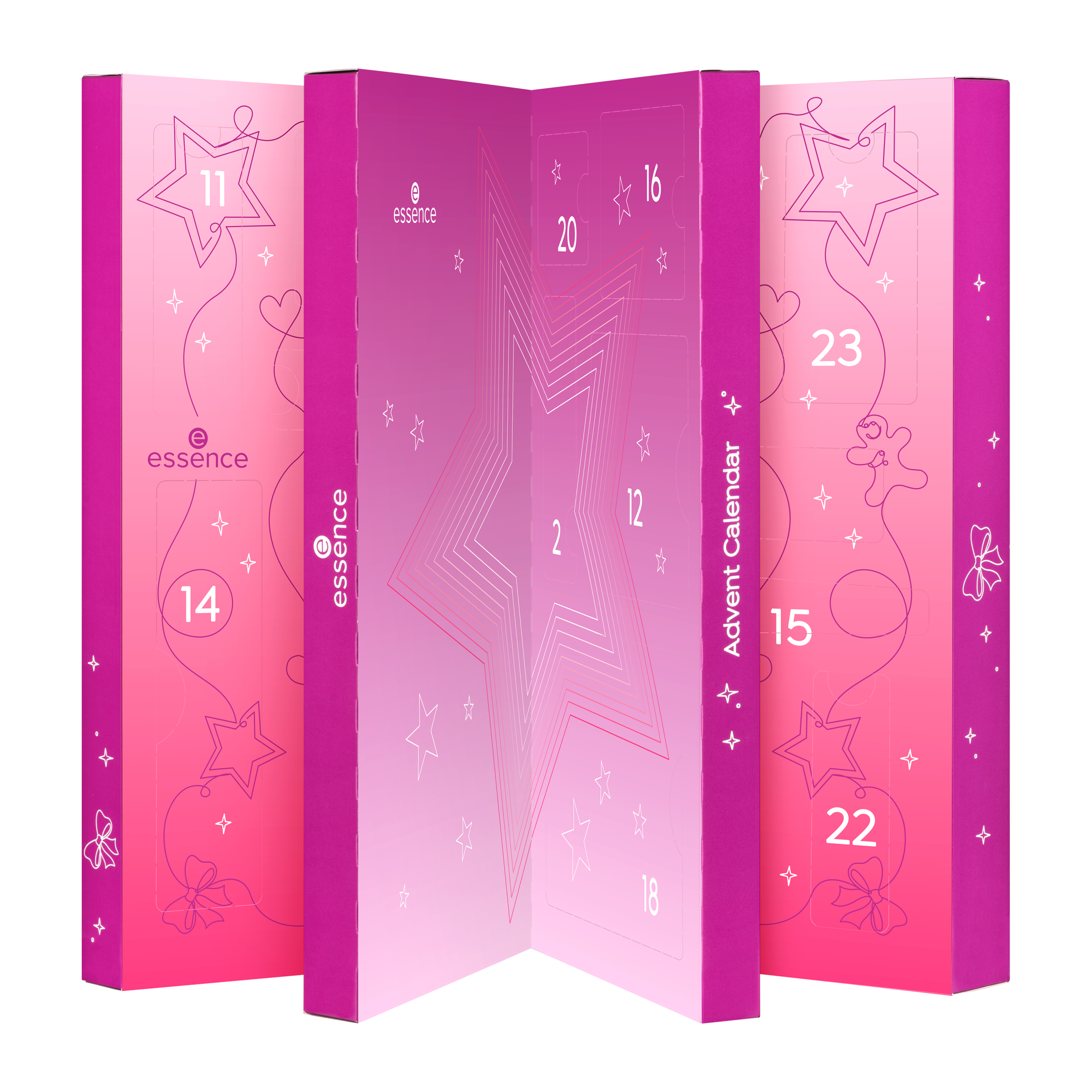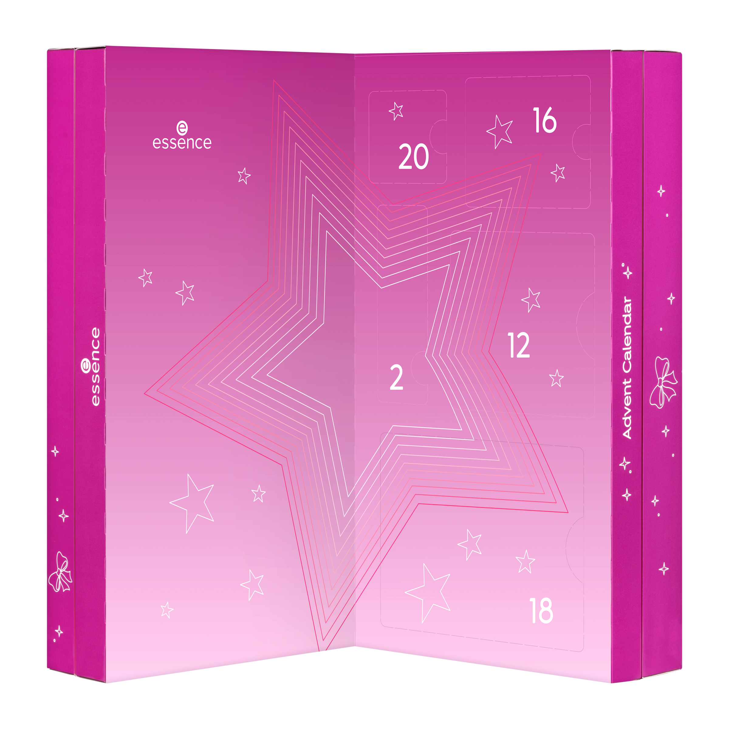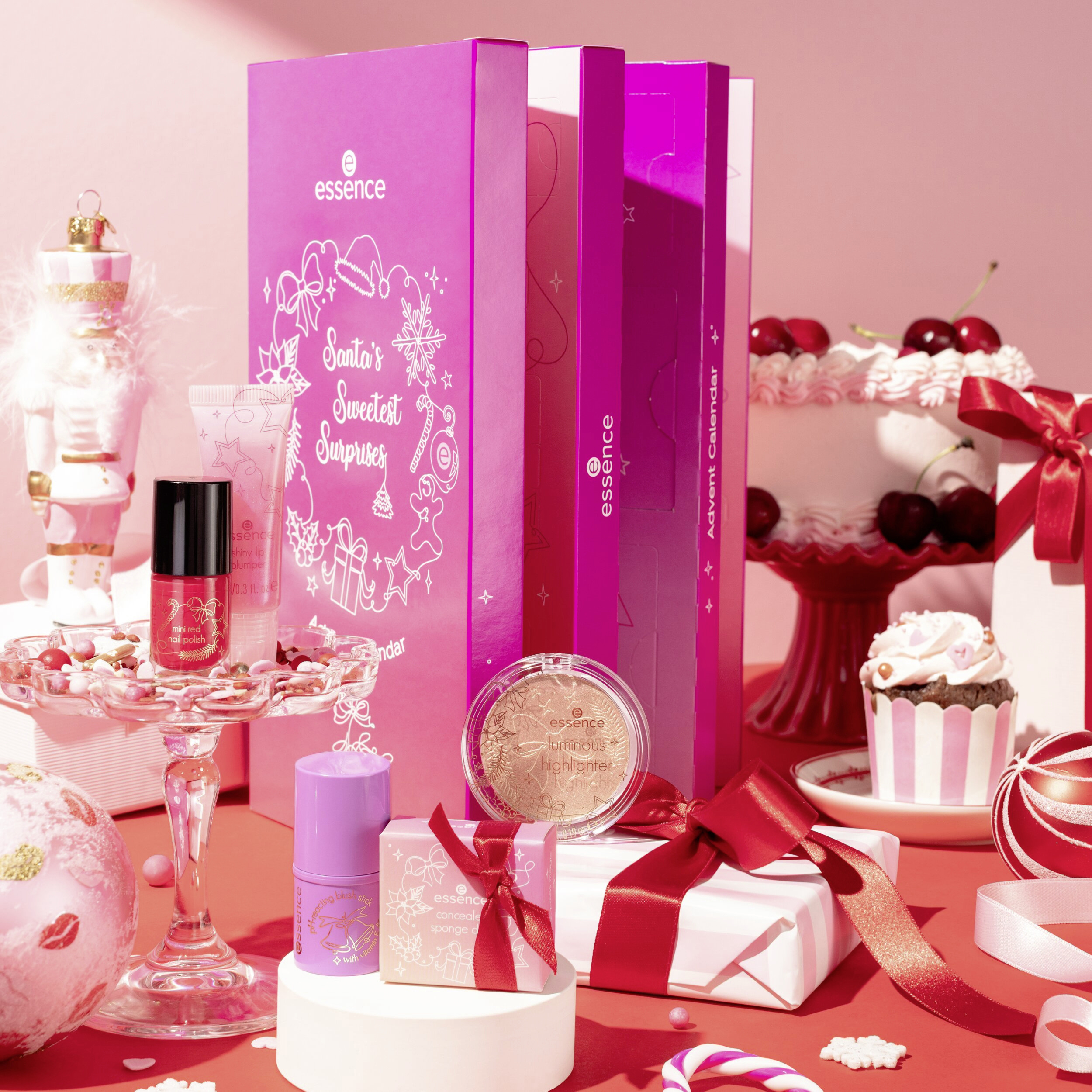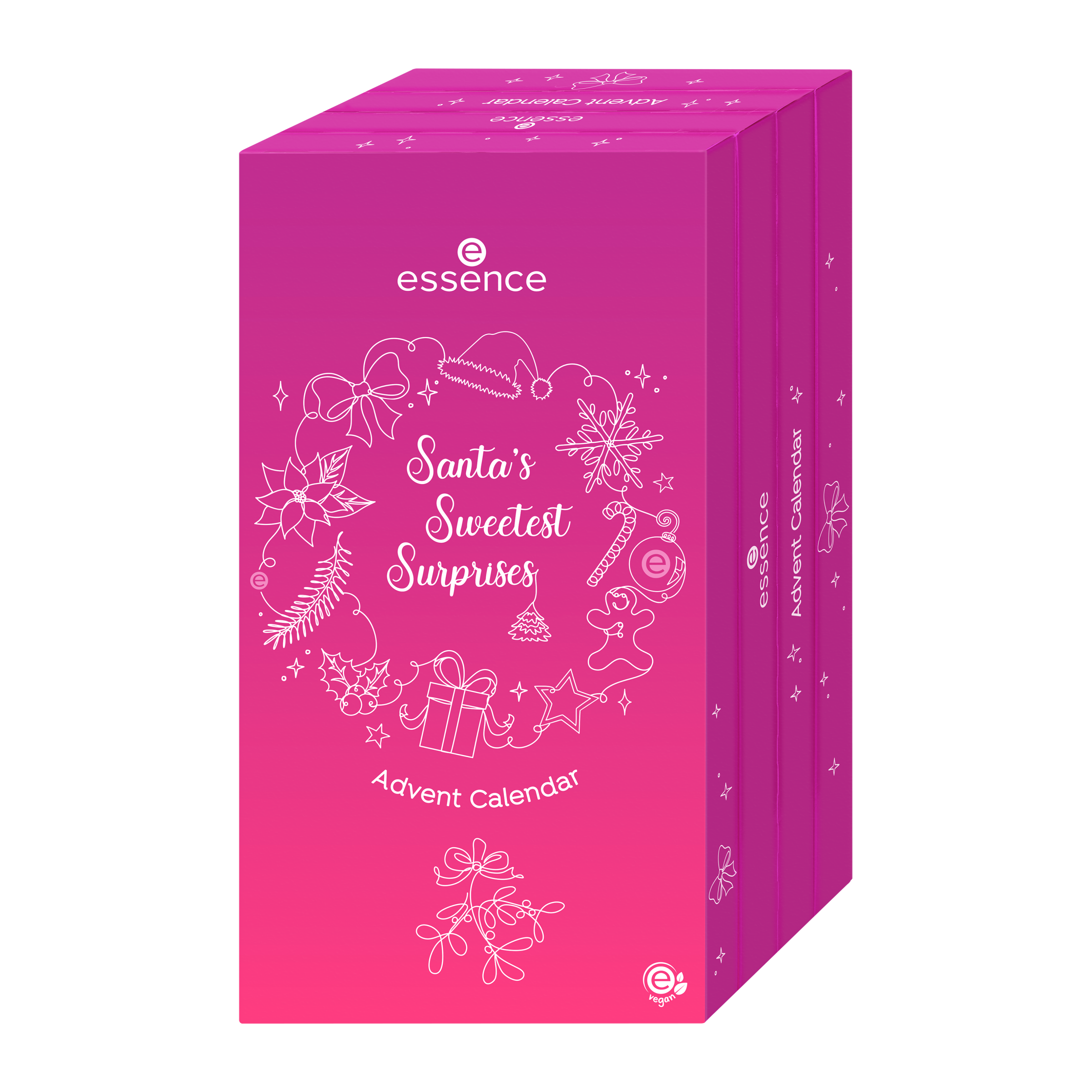 Santa Baby ... kabelka, parfém, čokoláda k Vánocům? Jistě, ale vše, co si opravdu budete přát, je 24 exkluzivních make-up produktů – jeden pro každý den v prosinci až do Štědrého dne. S essence adventním kalendářem Santa’s Sweetest Surprises se váš sen stane skutečností. Bavte se při otevírání malých okýnek a objevte vybrané kosmetické produkty, které budete potřebovat pro svůj třpytivý vánoční make-up. Vyzkoušejte duo houbiček na korektor nebo vytvořte nepřehlédnutelné líčení očí pomocí exkluzivní šablony na oční linky. Bílý třpytivý lak na nehty je dokonalým doplňkem vašeho vánočního outfitu – sláva už je sníh!