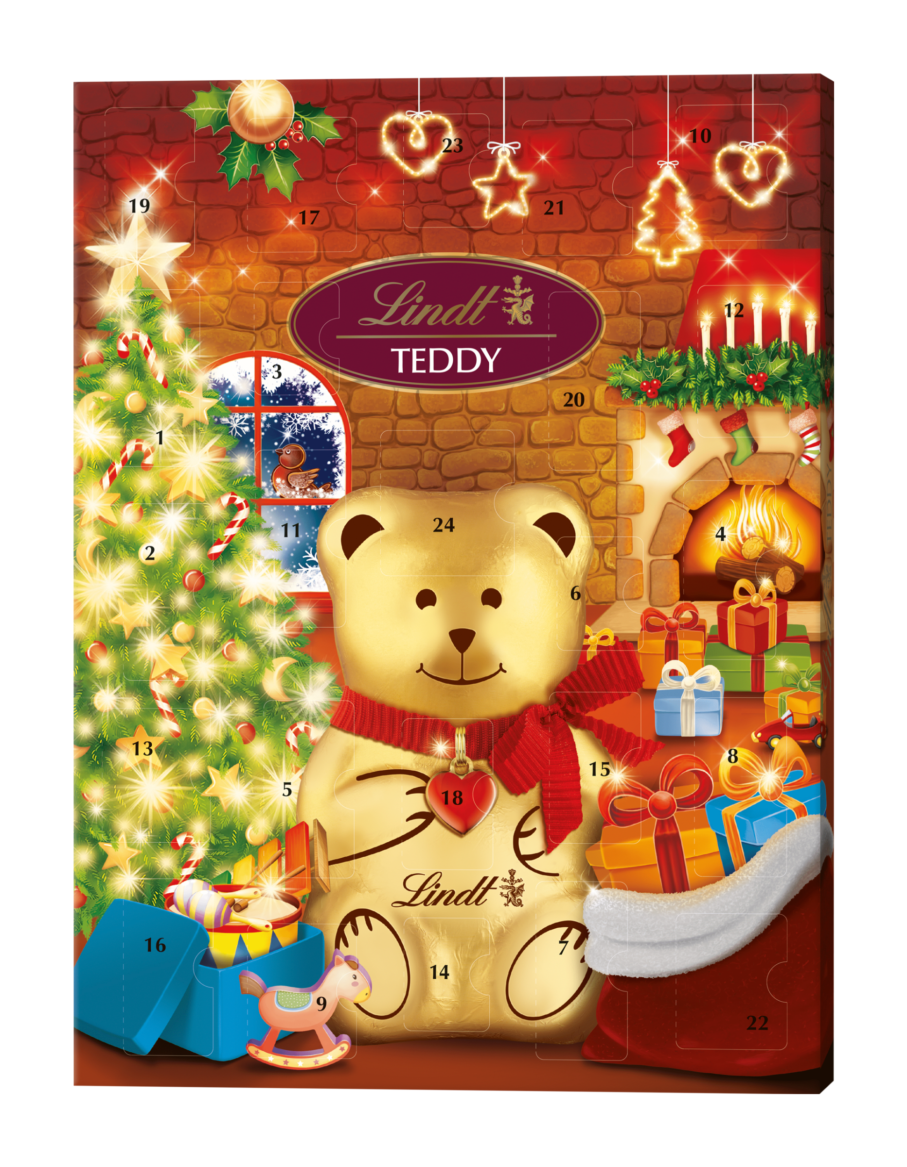 Adventní kalendář od značky Lindt potěší každého malého i velkého mlsouna čokolády. To co se skrývá za každým jednotlivým okénkem vám samozřejmě neprozradíme, nicméně můžete se těšit na ikonické medvídky TEDDY z kvalitní mléčné čokolády a mnoho dalších překvapení, která si pro vás švýcarští Mistři čokolády Lindt nachystali. Odpočítávejte dny do Vánoc s Lindt. Adventní doba tak bude o to sladší a jedinečná.