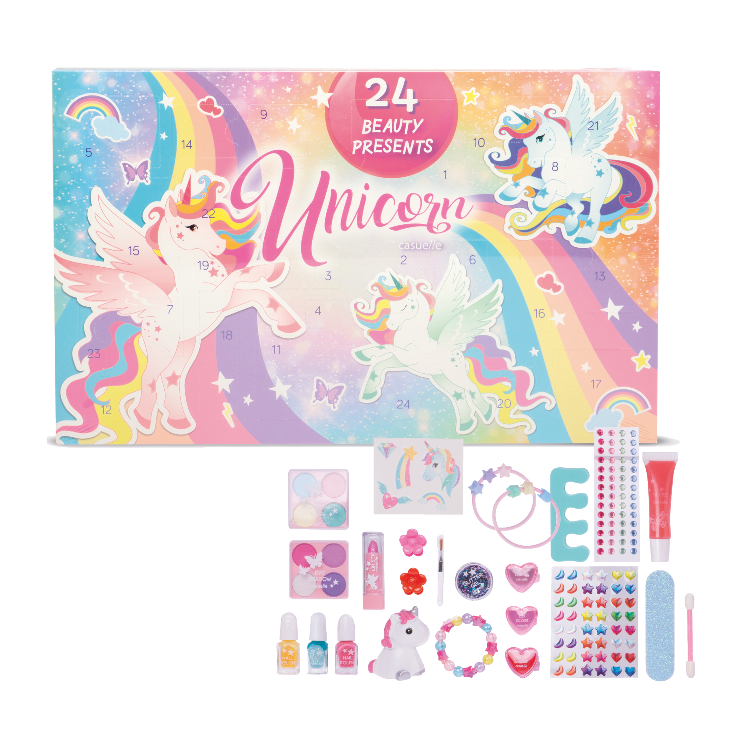 Adventní kalendář Unicorn přináší každý den nové překvapení, které rozzáří váš vzhled a zlepší vám náladu. Tento kouzelný kalendář obsahuje širokou škálu kosmetických produktů, které jsou pečlivě vybrané, aby vám poskytly luxusní zážitek.