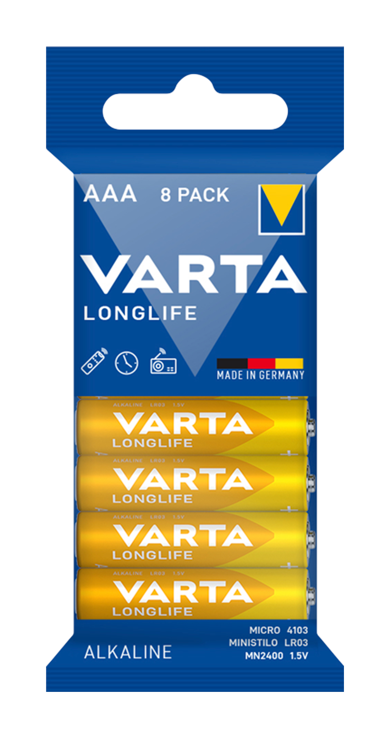 Baterie VARTA LONGLIFE jsou řadou baterií s dlouhou výdrží. Fungují nejlépe u přístrojů s nižší a konstantní spotřebou energie, jako jsou dálkové ovladače, nástěnné hodiny nebo rádia.