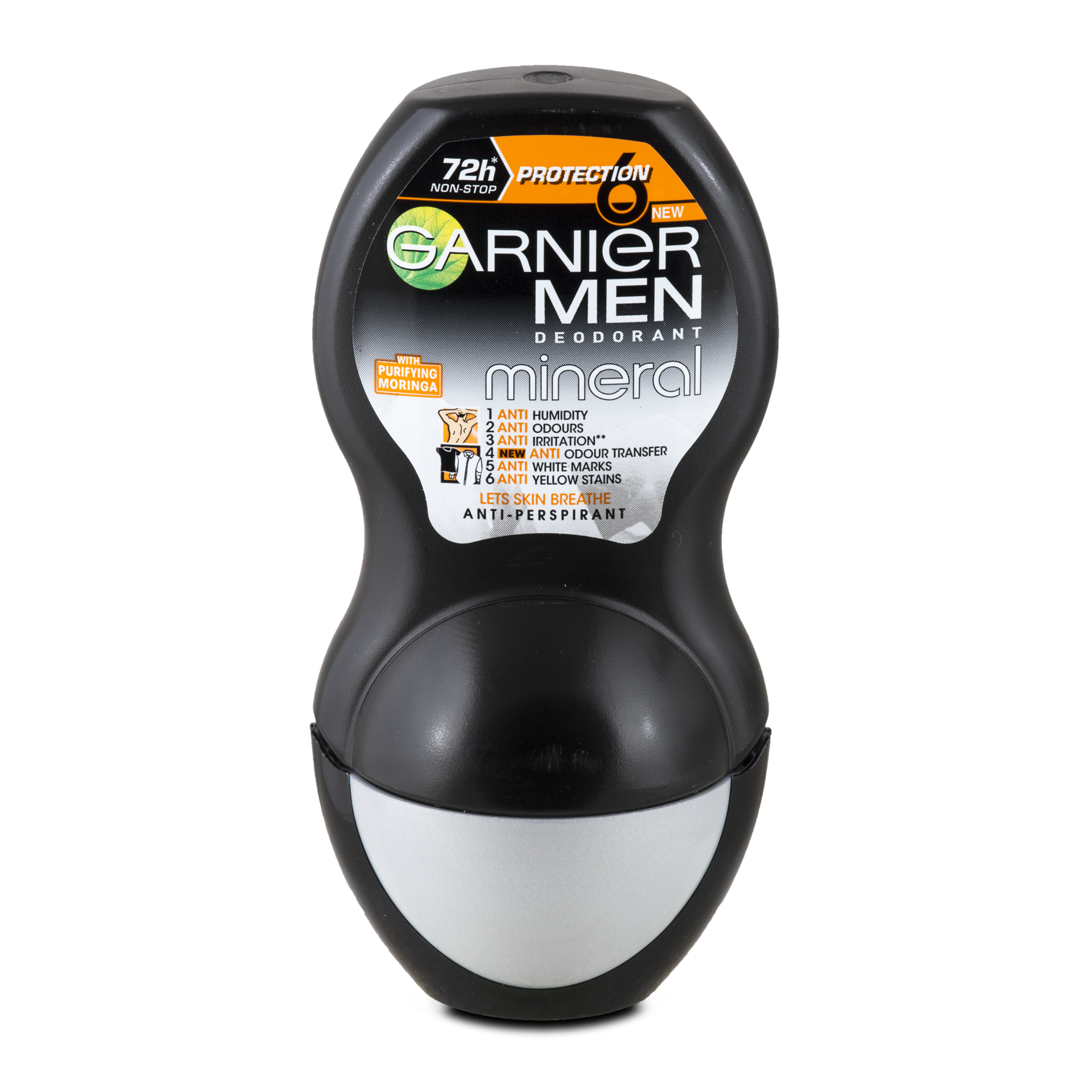 Garnier Men Mineral Protection 6 antiperspirant roll-on pro muže zabraňuje vzniku zápachu a jeho přenosu na oblečení. Je obohacen o Mineralite, přírodní absorpční minerál vulkanického původu a moringu. Rychle schne, je jemný k pokožce a chrání proti vlhkosti a pachům.