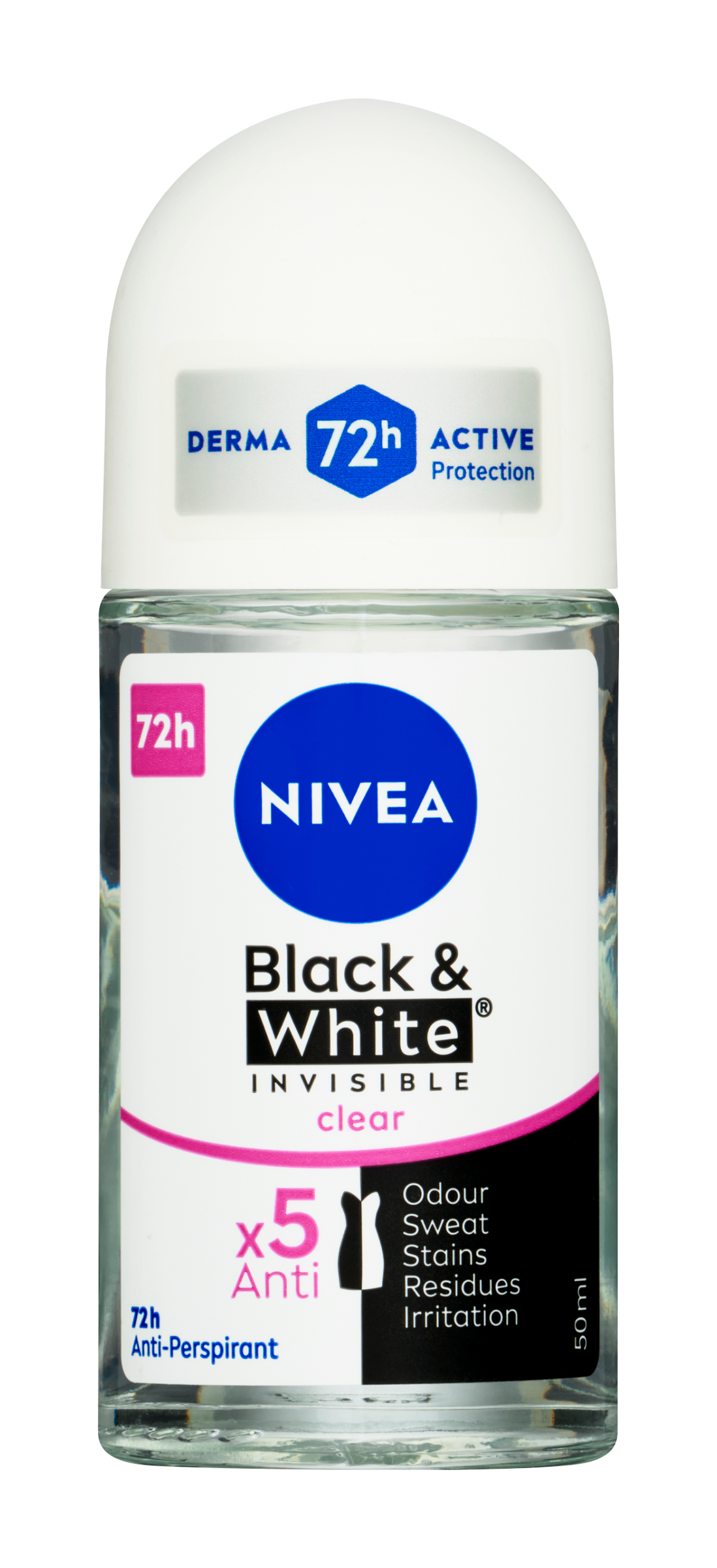 Poznejte skutečně účinný antiperspirant s atraktivní květinovou vůní, který chrání proti pocení i zápachu a zároveň chrání i vaše oblečení. Laboratoře NIVEA vyvinuly složení antiperspirantů s unikátní patentovanou technologií, která zabraňuje vzniku bílých stop na černém oblečení a pomáhá předcházet vzniku žlutých skvrn, které se mohou časem objevit na bílém oblečení. S naší neúčinnější technologií Derma Active získáte ochranu proti pocení a pachu potu až na 72 hodin. Jemné složení ale zároveň o pokožku pečuje a předchází podráždění. Seznamte se se světovou jedničkou v deodorantech nezanechávajících skvrny na oblečení:** NIVEA Kuličkový antiperspirant Black & White Invisible Clear.