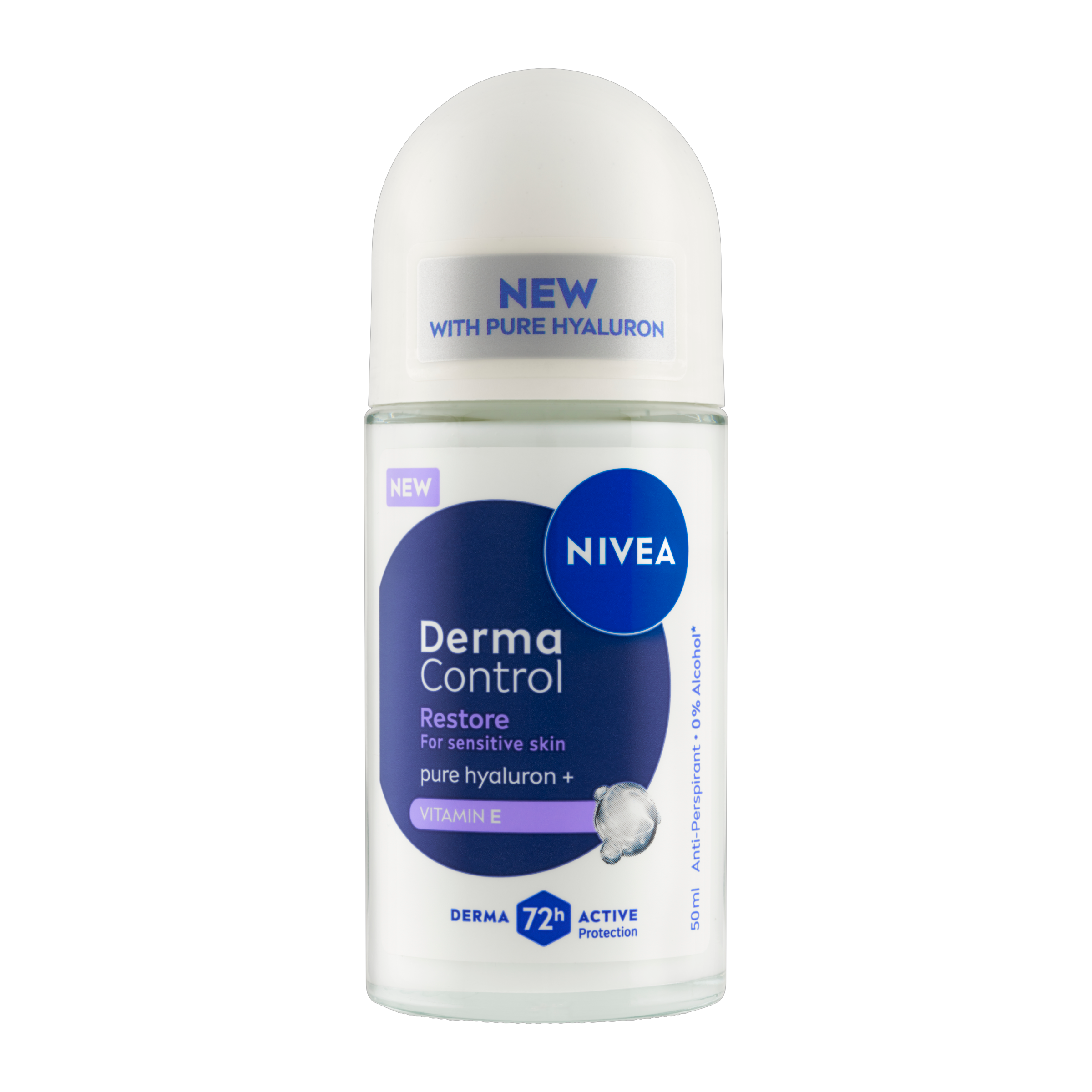 Velmi citlivou pokožku v podpaží často trápí zarudnutí, podráždění a nepříjemné svědění. Inovativní antiperspirant NIVEA z řady Derma Control obsahuje pečující a šetrné aktivní látky, které zklidňují pokožku a zároveň ji chrání před pocením a zápachem až na 72 hodin. Kyselina hyaluronová se postará o hydrataci pokožky a vitamín E o její zklidnění a ochranu před poškozením. Pokožka podpaží získá viditelně zdravější vzhled a zmírní se příznaky podráždění. Neobsahuje alkohol* a díky tomu je vhodný i pro velmi citlivou pokožku. Díky praktické kuličce se antiperspirant velmi snadno aplikuje, okamžitě zasychá a nelepí na pokožce. *neobsahuje ethylalkohol