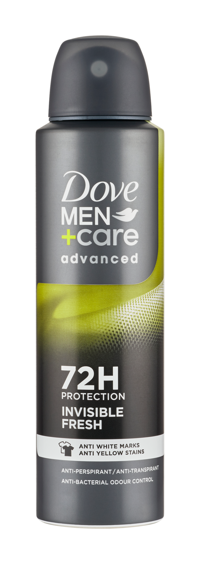 Antiperspirant ve spreji Dove Men+Care Invisible Fresh chrání vaše oblíbené oblečení před bílými a žlutými skvrnami a dodá vám svěží vůni citrusů. Už žádné skvrny na oblečení! Tento antiperspirant pro muže netvoří bílé a žluté skvrny, čímž vám pomáhá cítit se příjemně a sebevědomě ve vašem oblečení. Unikátní technologie Triple Action vám dodá ochranu proti potu a zápachu až na 72 hodin, vyživuje pokožku vašeho podpaží a dodá vám dlouhotrvající svěží vůni citrusů po celý den. Díky technologii s ¼ hydratačního krému chrání vaše podpaží před podrážděním způsobeným potem a holením a zároveň vyživuje a pečuje o vaši pokožku. Výsledkem je hladká a vyživená pokožka vašeho podpaží. Značka Dove netestuje na zvířatech, a proto i tento pánský antiperspirant nese označení PETA Approved, cruelty free a vegan