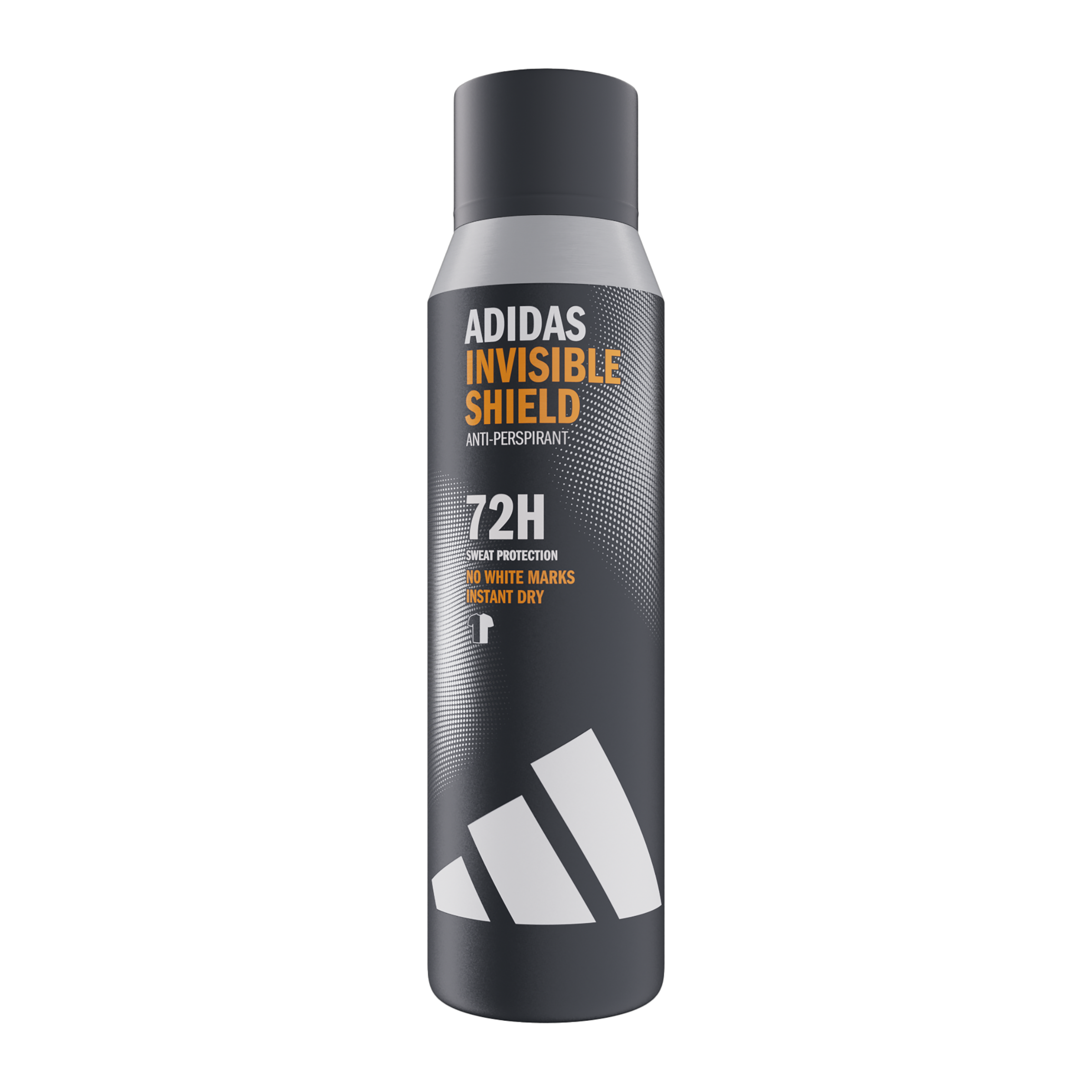 Pánský antiperspirant adidas Invisible Shield s dřevitou vůní, rychle usychá a poskytuje ochranu proti pocení po dobu 72 hodin bez bílých stop a žlutých skvrn.