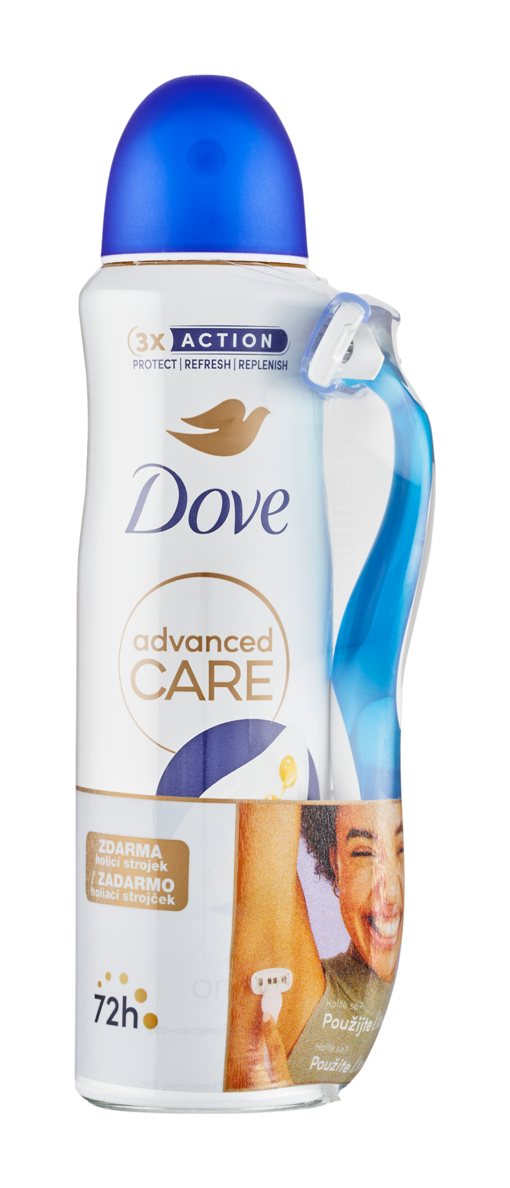 Objevte Dove Advanced Care Original antiperspirant ve spreji pro 72hodinovou ochranu, svěží podpaží a navíc bez skvrn na oblečení. Nosíte ráda zářivé barvy, ale bojíte se, že se na Vašem oblečení objeví bílé skvrny? Antiperspirant sprej Dove Advanced Care Original je první antiperspirant, který byl vyvinut tak, aby nezanechával bílé stopy na stovce barev. Díky němu si můžete dovolit nosit šaty jakékoliv barvy na jakoukoliv příležitost, protože budete mít jistotu, že se na nich neobjeví žádné bílé skvrny. S antiperspirantem ve spreji Dove Advanced Care Original si budete moci dovolit nosit ty nejbarevnější šaty a zapomenout na skvrny od deodorantu jednou provždy. Nechte Dove Advanced Care Original antiperspirant sprej být vaší každodenní součástí. Poskytne vám 72hodinovou ochranu před potem a zápachem, stejně jako hladké a hydratované podpaží. Připravte se na to, abyste se mohla cítit sebejistě. Tento deodorant je plný prémiových pečujících složek receptury Advanced Care. Technologie Triple Moisturizing, která vyniká třemi různými hydratačními prvky. Poskytuje prémiové hydratační benefity porovnatelné s profesionální péčí o pleť. Funguje tak, že posiluje bariéru vlhkosti vaší pokožky, pomáhá jí udržet vlhkost hluboko v pokožce, nasává vlhkost z prostředí a zabraňují jejímu odpařování tím, že uzamkne vnější bariéru vaší pokožky. Poskytuje vaší pokožce maximální péči, zklidňuje podráždění v podpaží způsobené holením při každém použití a zanechává vám pokožku jemnější, hladší.