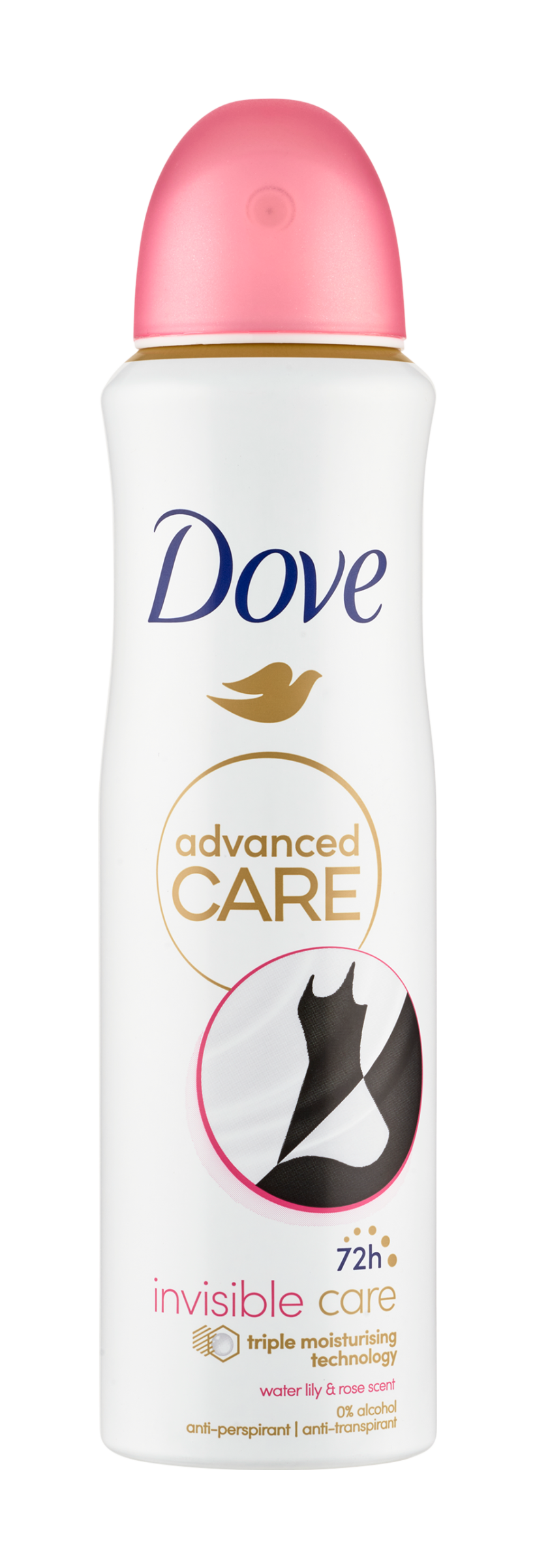 Objevte Dove Advanced Care Invisible Care antiperspirant ve spreji pro 72hodinovou ochranu, svěží podpaží a navíc bez skvrn na oblečení. Nosíte ráda zářivé barvy, ale bojíte se, že se na Vašem oblečení objeví bílé skvrny? Antiperspirant sprej Dove Invisible Care je první antiperspirant, který byl vyvinut tak, aby nezanechával bílé stopy na stovce barev. Díky němu si můžete dovolit nosit šaty jakékoliv barvy na jakoukoliv příležitost, protože budete mít jistotu, že se na nich neobjeví žádné bílé skvrny. S antiperspirantem ve spreji Dove Invisible Care si budete moci dovolit nosit ty nejbarevnější šaty a zapomenout na skvrny od deodorantu jednou provždy.