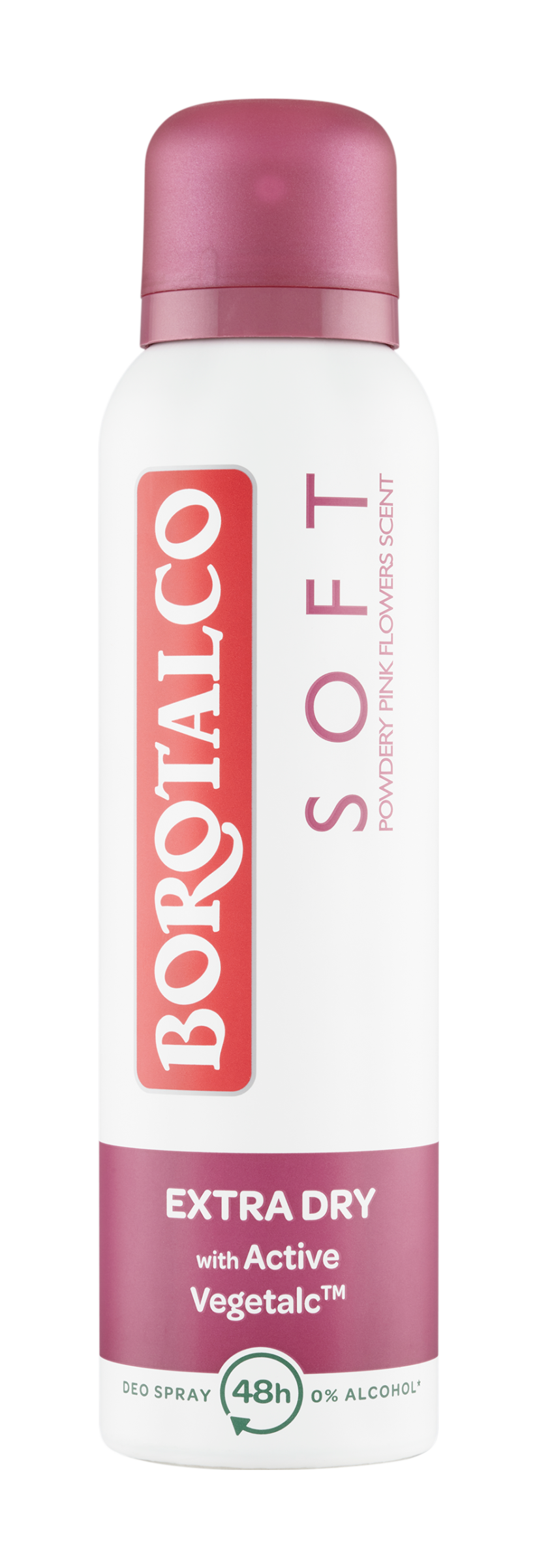 Oddejte se Borotalco zážitku s Borotalco Soft! Jeho složení obohacené inovativním Active VegetalcTM, směsí absorpčních prášků rostlinného původu, nabízí trojitou ochranu proti pocení a extra suchý účinek, abyste se vždy cítili v pohodě: – Zabraňuje pocení a omezuje jeho tvorbu – Absorbuje pot hned, jak se objeví – Neutralizuje molekuly tvořící pot 48hodinová účinnost deodorantu. 0% alkoholu*. Dermatologicky testováno. Pudrová vůně růžových květů: Nadčasová vůně, v níž se snoubí vodní svěžest konvalinek se sofistikovanou krásou růží, zahalených do pudrového základu.