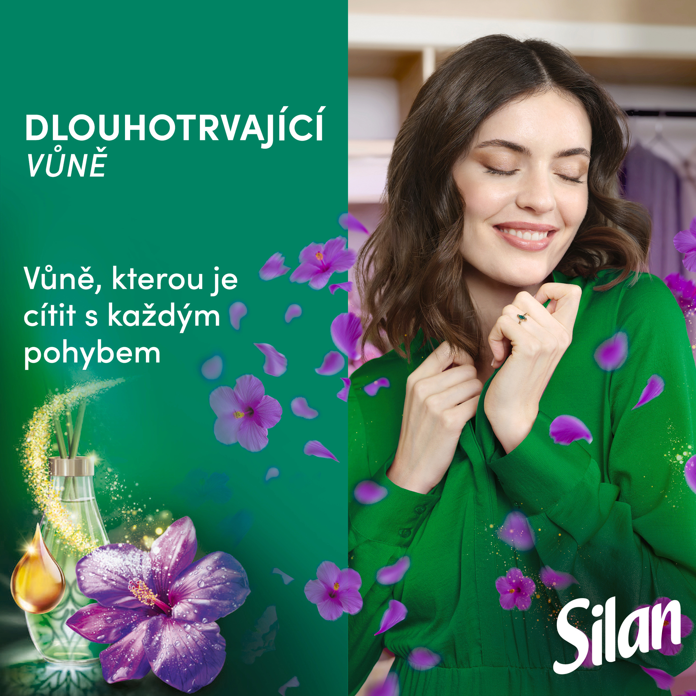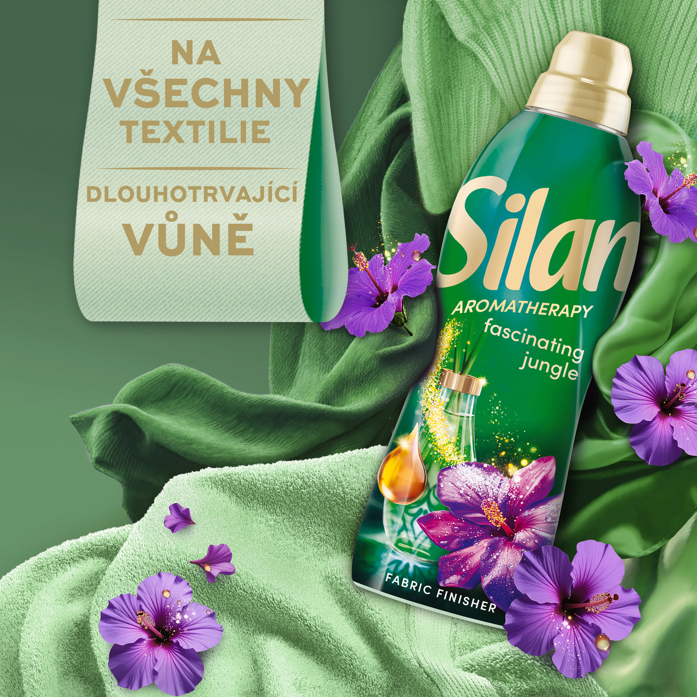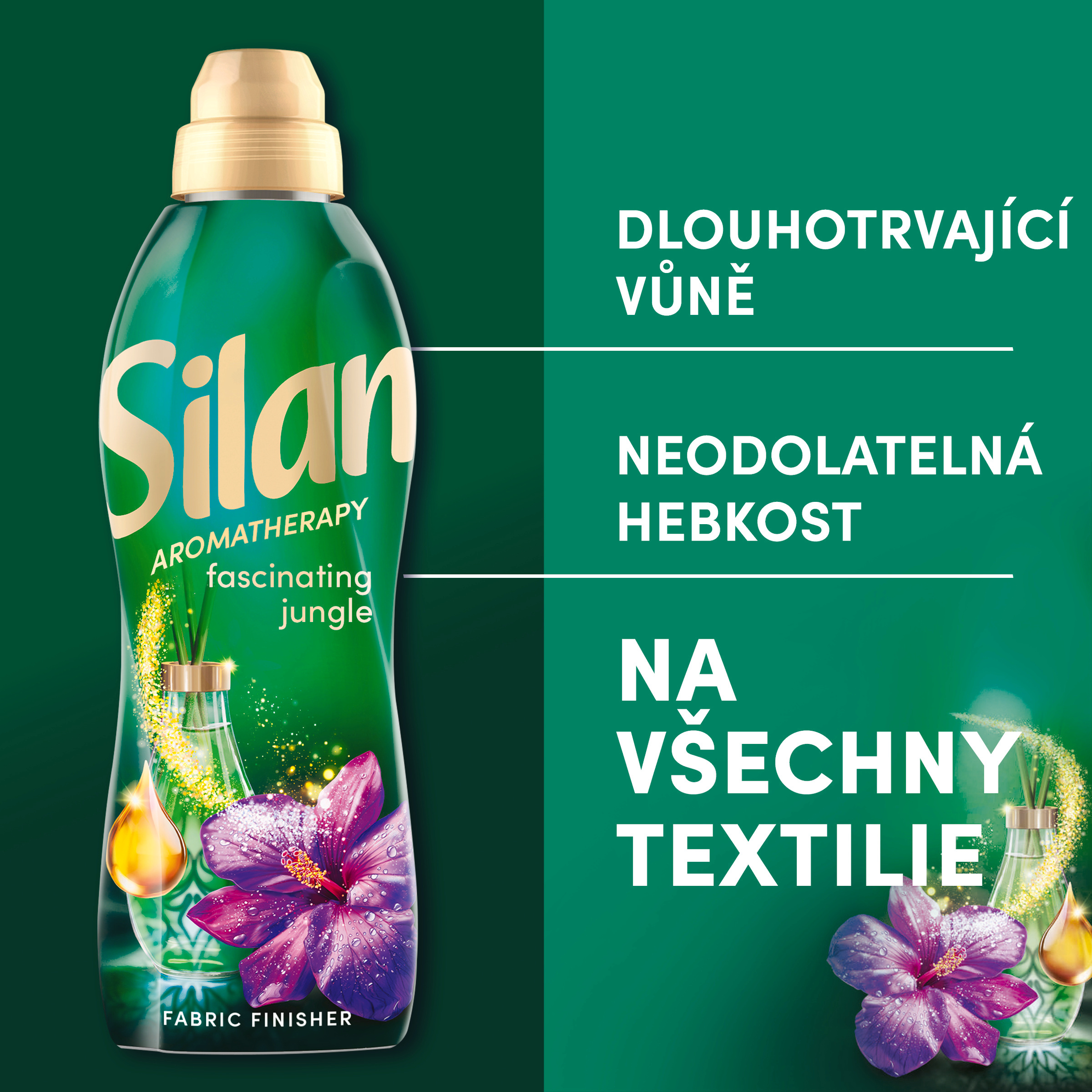 Aviváž Silan Fascinating Jungle - Dopřejte si dlouhotrvající květinovou vůni, na všechny textilie Zakončete svou prací rutinu novinkou v oblasti péče o prádlo: Aviváž Silan Fascinating Jungle - na všechny textilie. Její jedinečné složení s esenciálními oleji poskytuje dlouhotrvající květinovou vůni a neodolatelnou hebkost po celý den. Nová inovativní technologie Silanu s esenciálními oleji přináší neuvěřitelnou dlouhotrvající vůni vašemu oblečení jako nikdy předtím. Speciální voňavé mikrokapsle obsažené ve složení se uvolňují a dodávají svěžest při každém pohybu, abyste si mohli vůni užívat po celý den. Navržená pro všechny typy textilií, aviváž Silan zachovává prodyšnost, tvar a savost látek, takže se nemusíte obávat, které tkaniny ošetřujete. Zakončete svou prací rutinu Silanem.