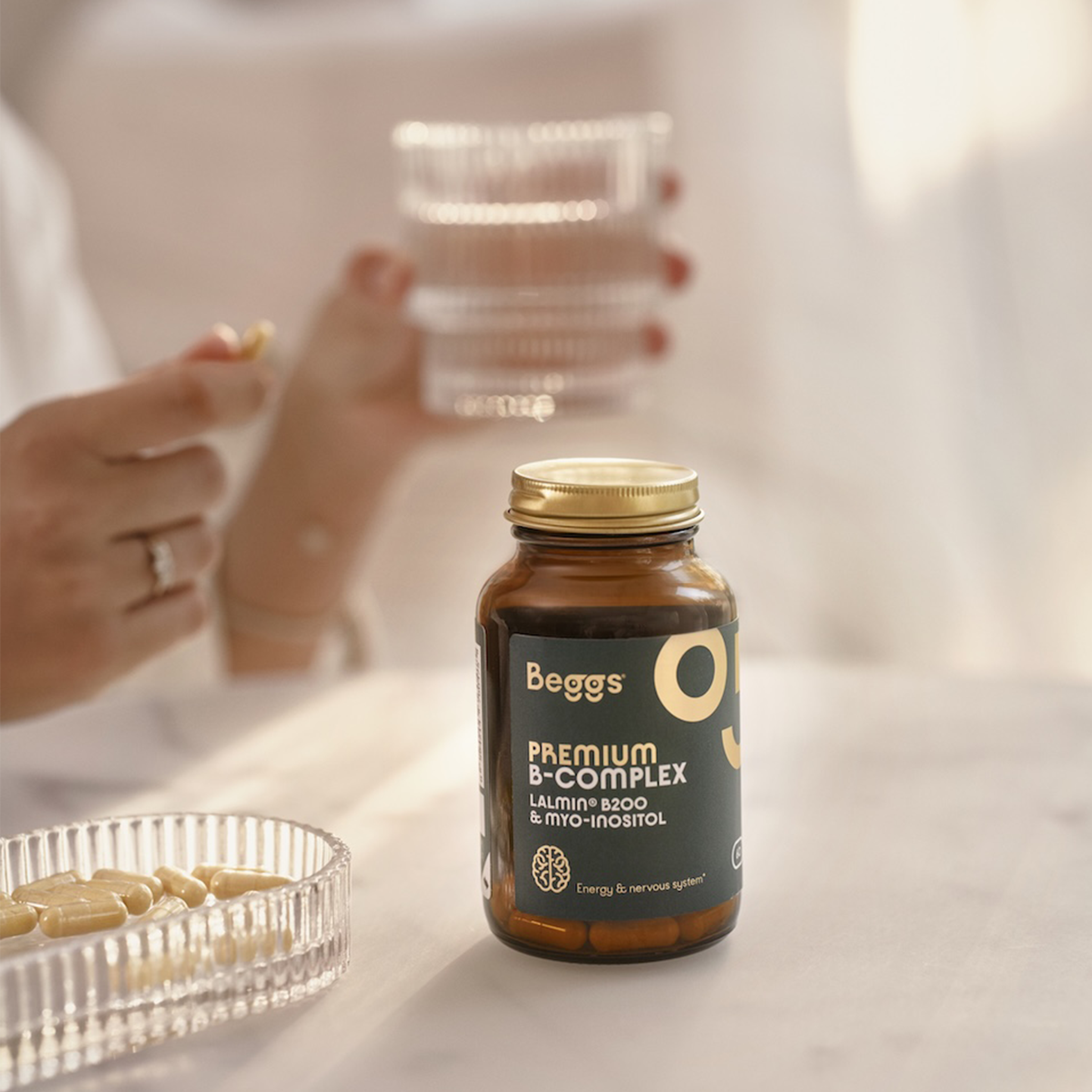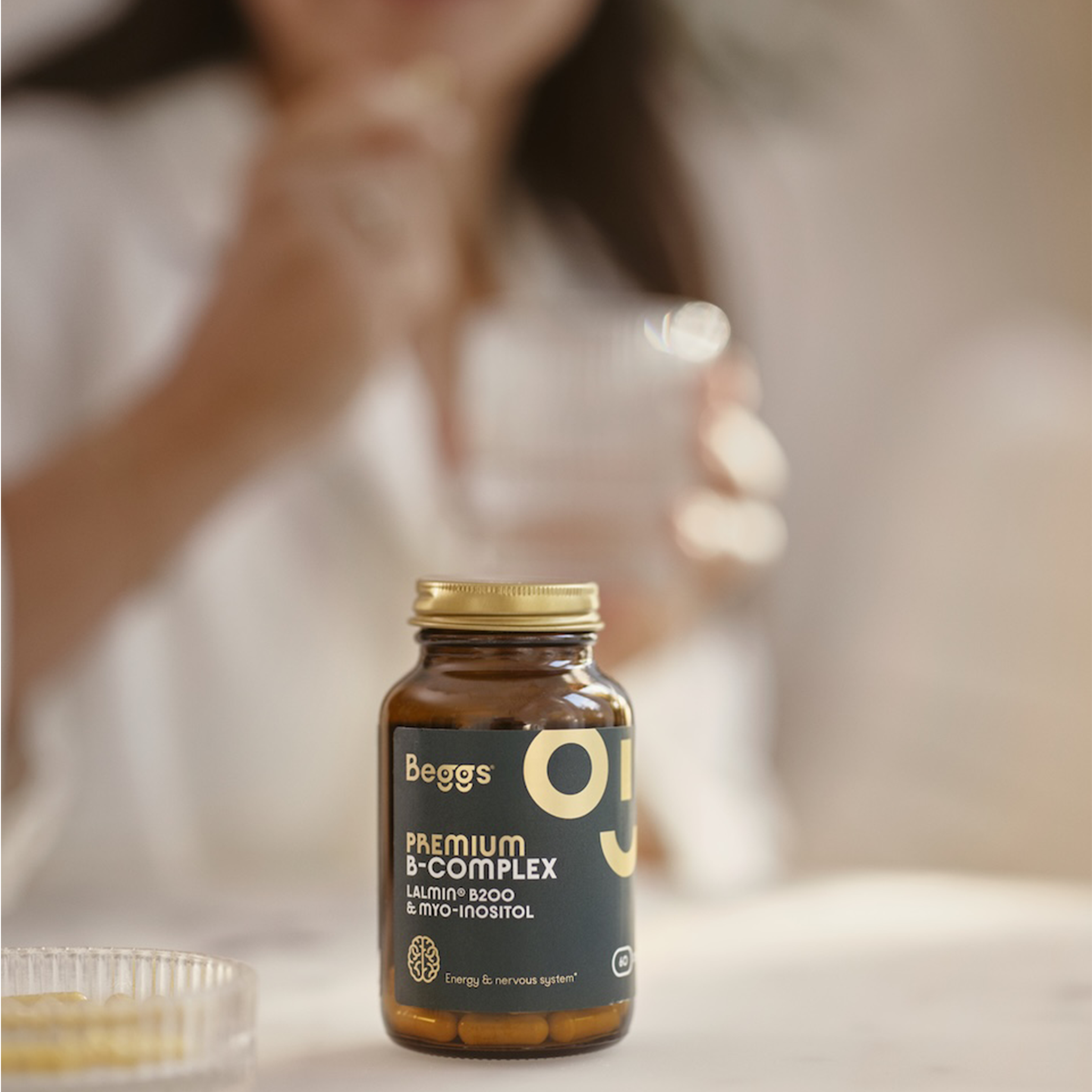 Beggs Premium B-Complex Prémiový doplněk stravy pro podporu energie, nervového systému a psychické činnosti. Obsahuje všechny esenciální vitaminy skupiny B a myo-inositol. Vyvinut pro ty, kteří chtějí udržet svou vitalitu a energetickou a psychickou rovnováhu každý den.