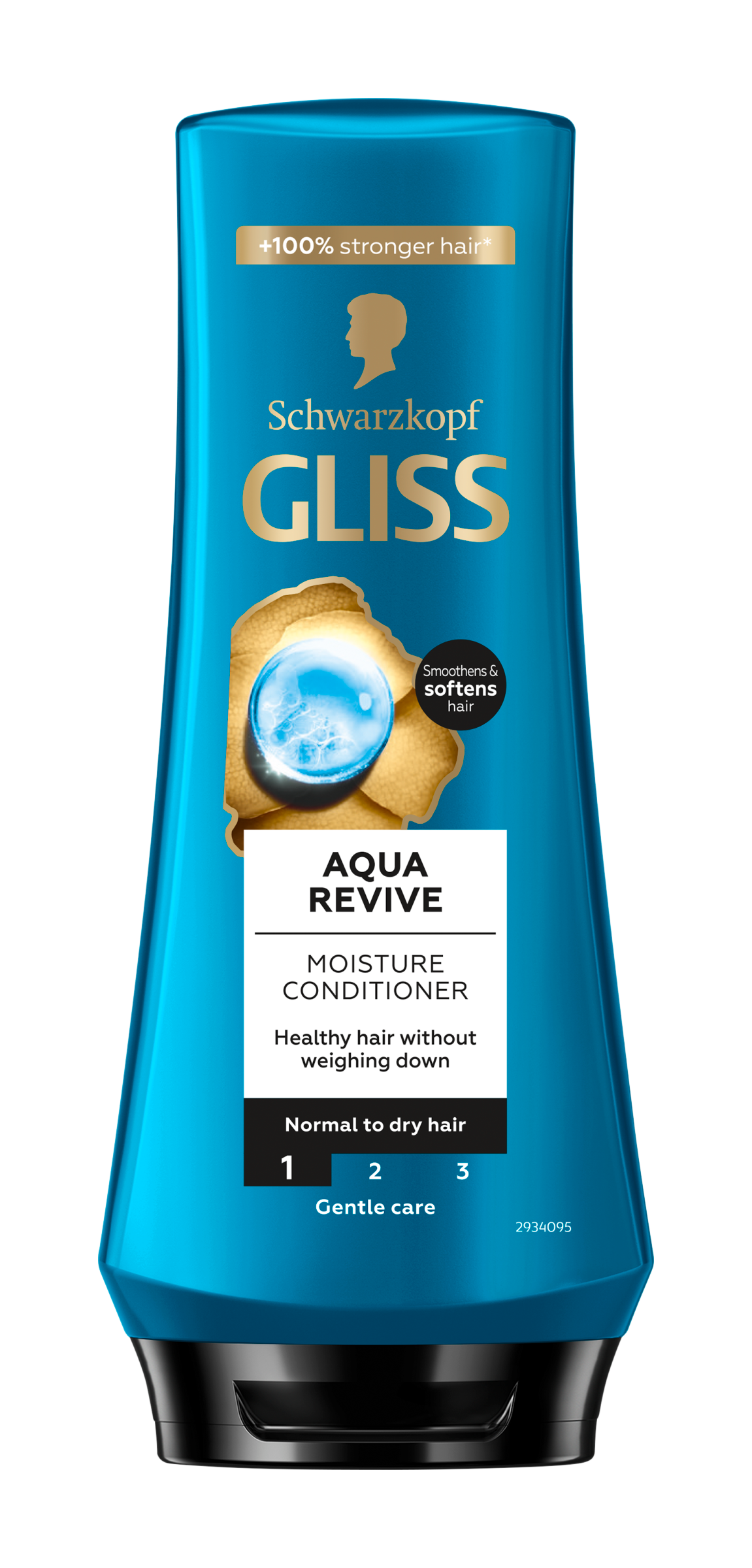 - Kondicionér Gliss Aqua Revive s hyaluronovým komplexem + mořskými řasami pro normální až suché vlasy. Smývatelný. Zdravě vypadající vlasy. Dokonalá rozčesatelnost a vlasy hydratované až na 48 hodin po jedné aplikaci.