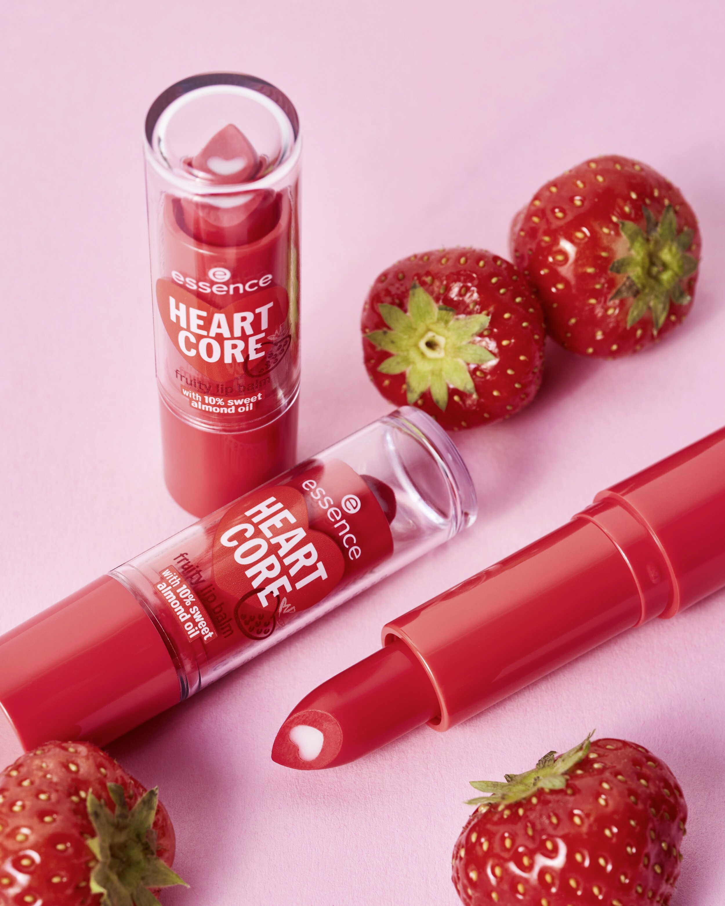 Ovocný balzám na rty HEART CORE má hravý design a je skutečně multifunkční: pečující jádro ve tvaru srdce a příjemně ovocná vůně a vejde se do každé kabelky. Kromě toho 10% olej ze sladkých mandlí poskytuje intenzivní péči a jemná textura s lehkým krytím zanechává na rtech jemný barevný třpytivý efekt – ideální pro rychlou úpravu na cestách.