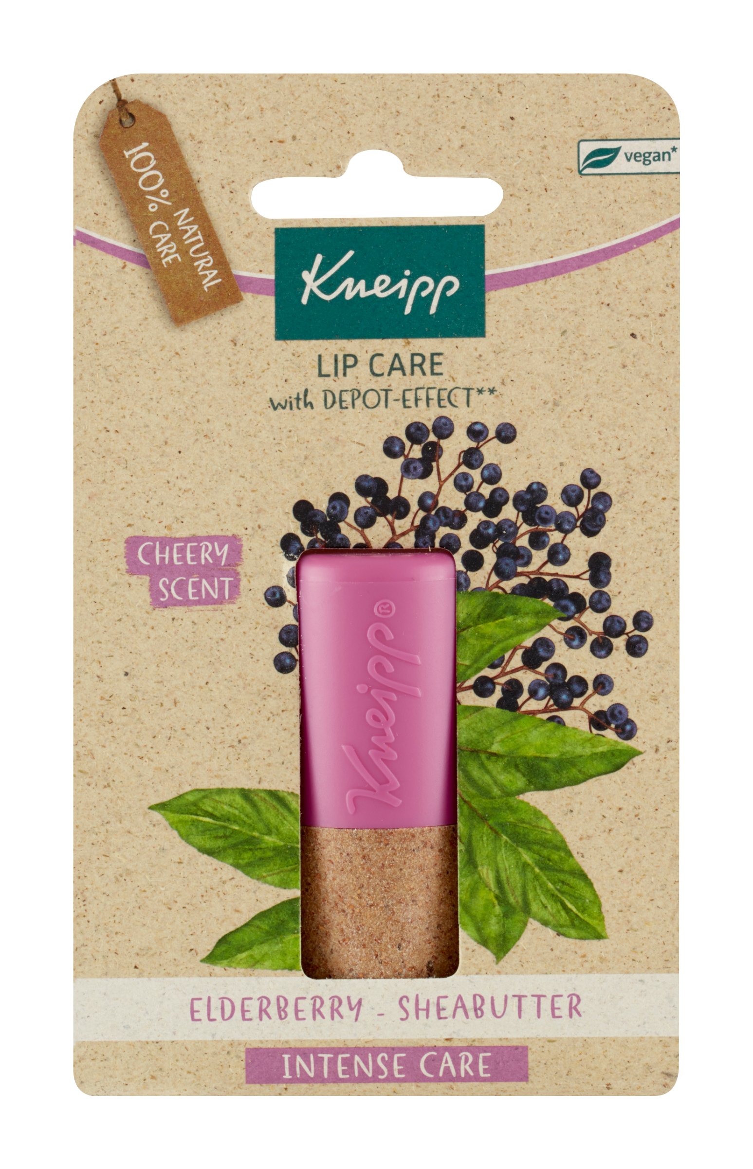 Hýčkejte své rty 100% přírodním složením se smyslnou vůní černého bezu v novém balzámu na rty Kneipp®. Přináší přírodní péči pro suché rty s efektem postupného vstřebávání pro dlouhodobý účinek. Pečující složku tvoří olej ze semen černého bezu a blahodárné bambucké máslo využívané v kosmetice po staletí. Na přírodu jsme mysleli nejen v receptuře, ale i v balení z korku a dárkovém balení z ekologicky šetrného papíru - krabička je vyrobena z 25 % z trávy. Jako jste u produktů z dílny Kneipp® zvyklí, balzám na rty neobsahuje konzervanty, parafíny, silikony ani minerální oleje.