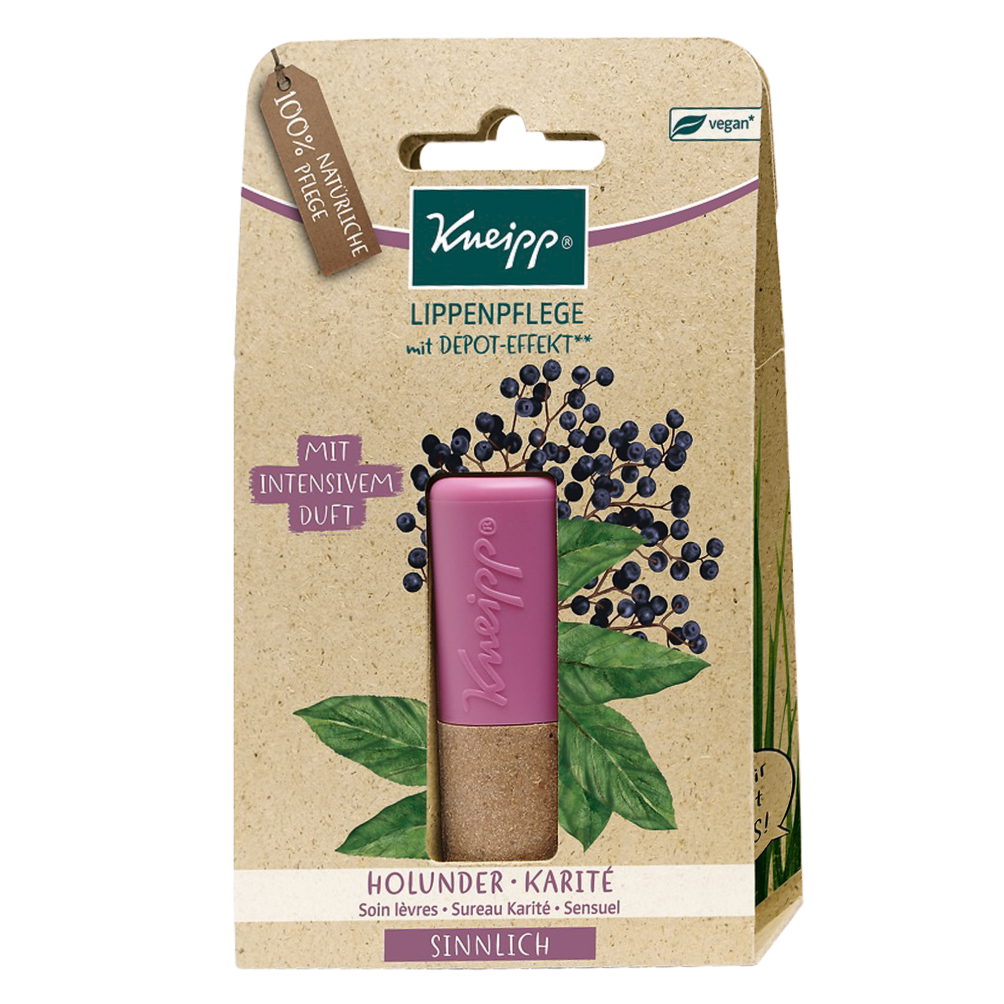 Hýčkejte své rty 100% přírodním složením se smyslnou vůní černého bezu v novém balzámu na rty Kneipp®. Přináší přírodní péči pro suché rty s efektem postupného vstřebávání pro dlouhodobý účinek. Pečující složku tvoří olej ze semen černého bezu a blahodárné bambucké máslo využívané v kosmetice po staletí. Na přírodu jsme mysleli nejen v receptuře, ale i v balení z korku a dárkovém balení z ekologicky šetrného papíru - krabička je vyrobena z 25 % z trávy. Jako jste u produktů z dílny Kneipp® zvyklí, balzám na rty neobsahuje konzervanty, parafíny, silikony ani minerální oleje.