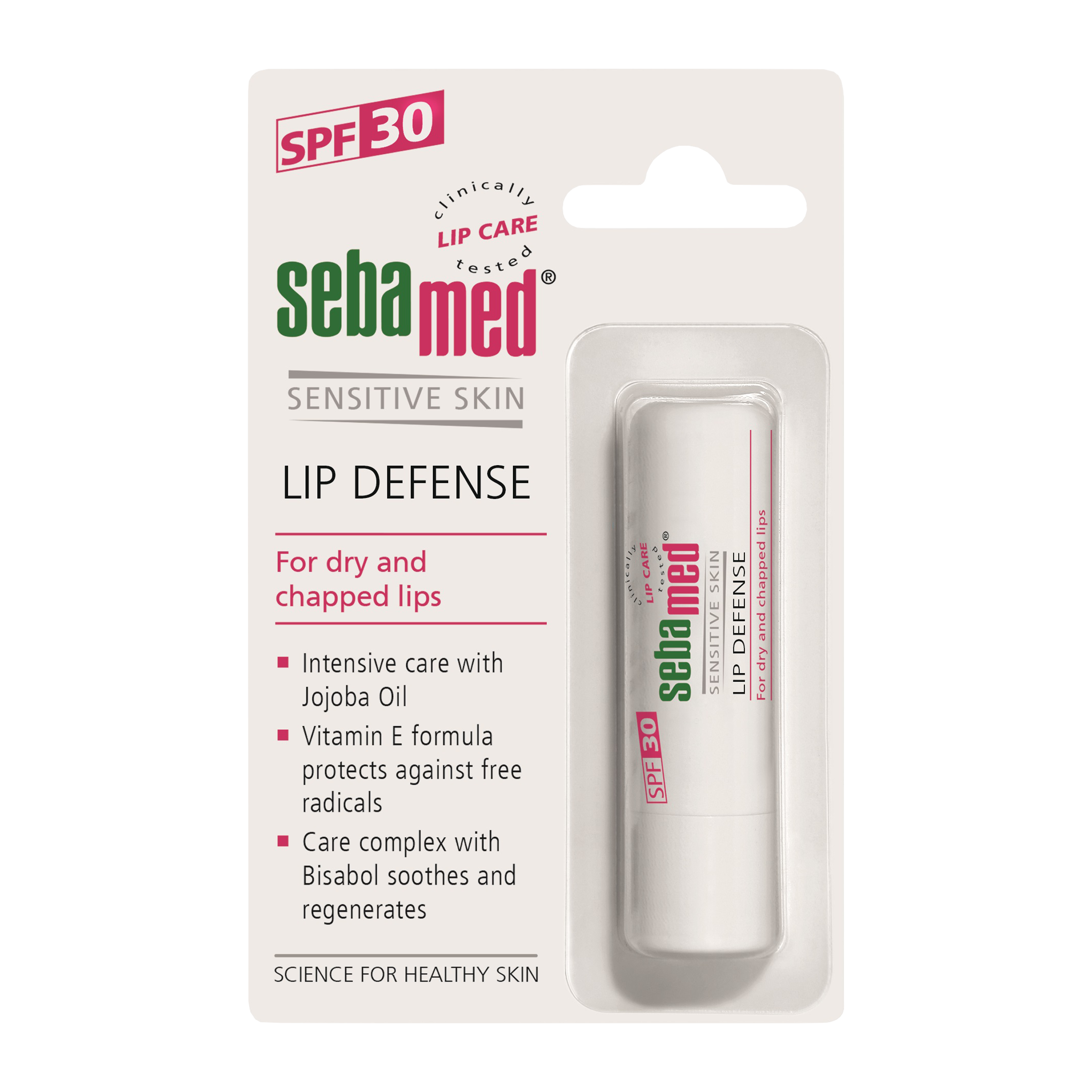 Balzám na rty s UV filtrem SPF 30 napomáhá obnově přirozeného ochranného pláště kůže s hodnotou pH 5,5. Podporuje efektivní regeneraci suchých a popraskaných rtů.