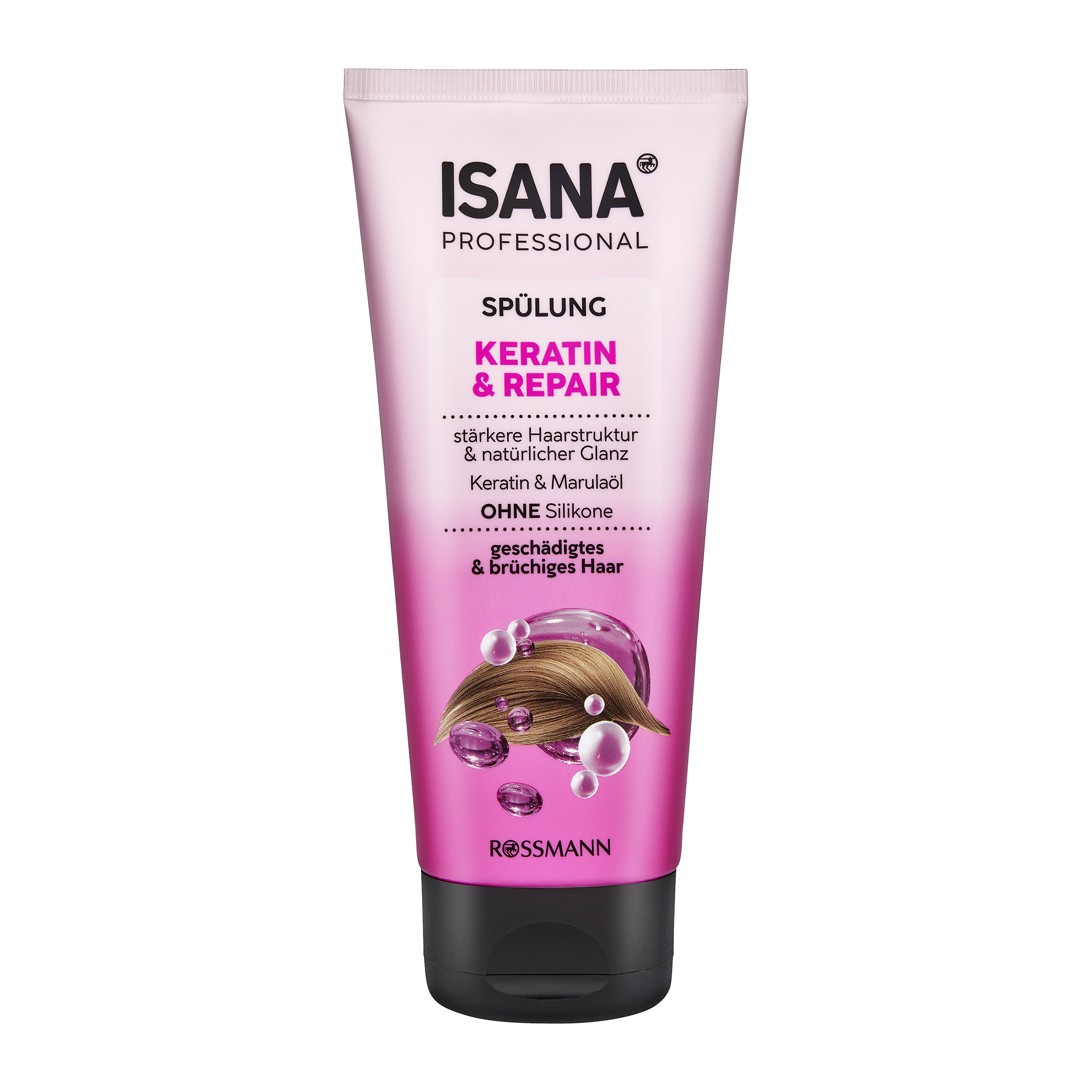 Kondicionér Keratin & Repair Isana Professional nabízí hloubkovou péči, která navrací poškozeným a křehkým vlasům sílu, vitalitu a přirozený lesk. Jeho speciálně vyvinutá receptura intenzivně regeneruje vlasové vlákno, zlepšuje jeho stabilitu a podporuje snadnější úpravu účesu. Kombinace keratinu a za studena lisovaného marulového oleje posiluje vlasy až ke konečkům, vyhlazuje je a pomáhá obnovit jejich odolnost i pružnost.