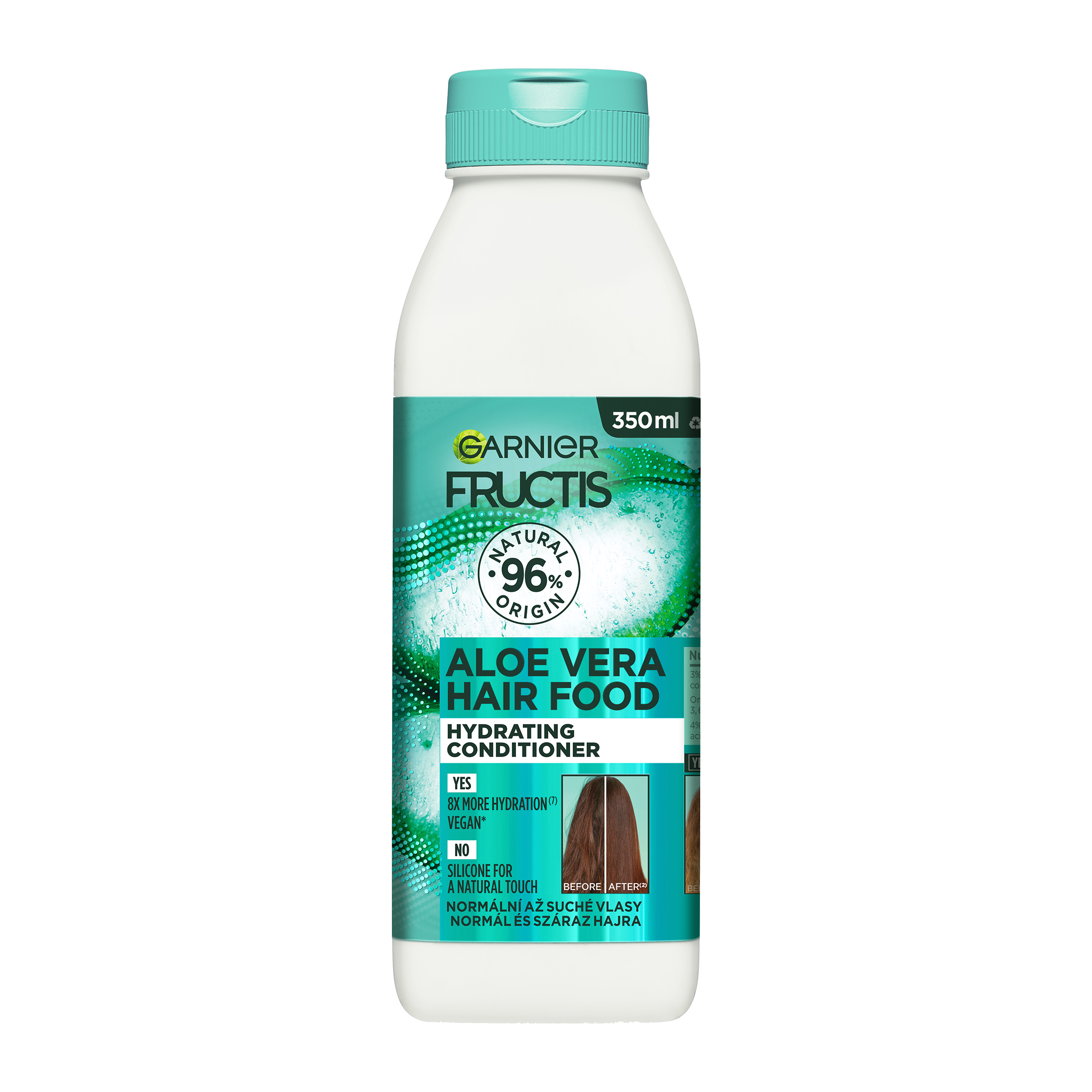 Kondicionér pro dehydratované vlasy a suchou pokožku hlavy, až 100h hydratace (1).hydratační kondicionér Hair Food Aloe vera rozčesává vlasy bez zatížení. Složení je z 97% přírodního původu. Zbývající 3% zaručují senzorické vlastnosti a stabilitu produktu. (1) Instrumentální test po použití šamponu a kondicionéru.