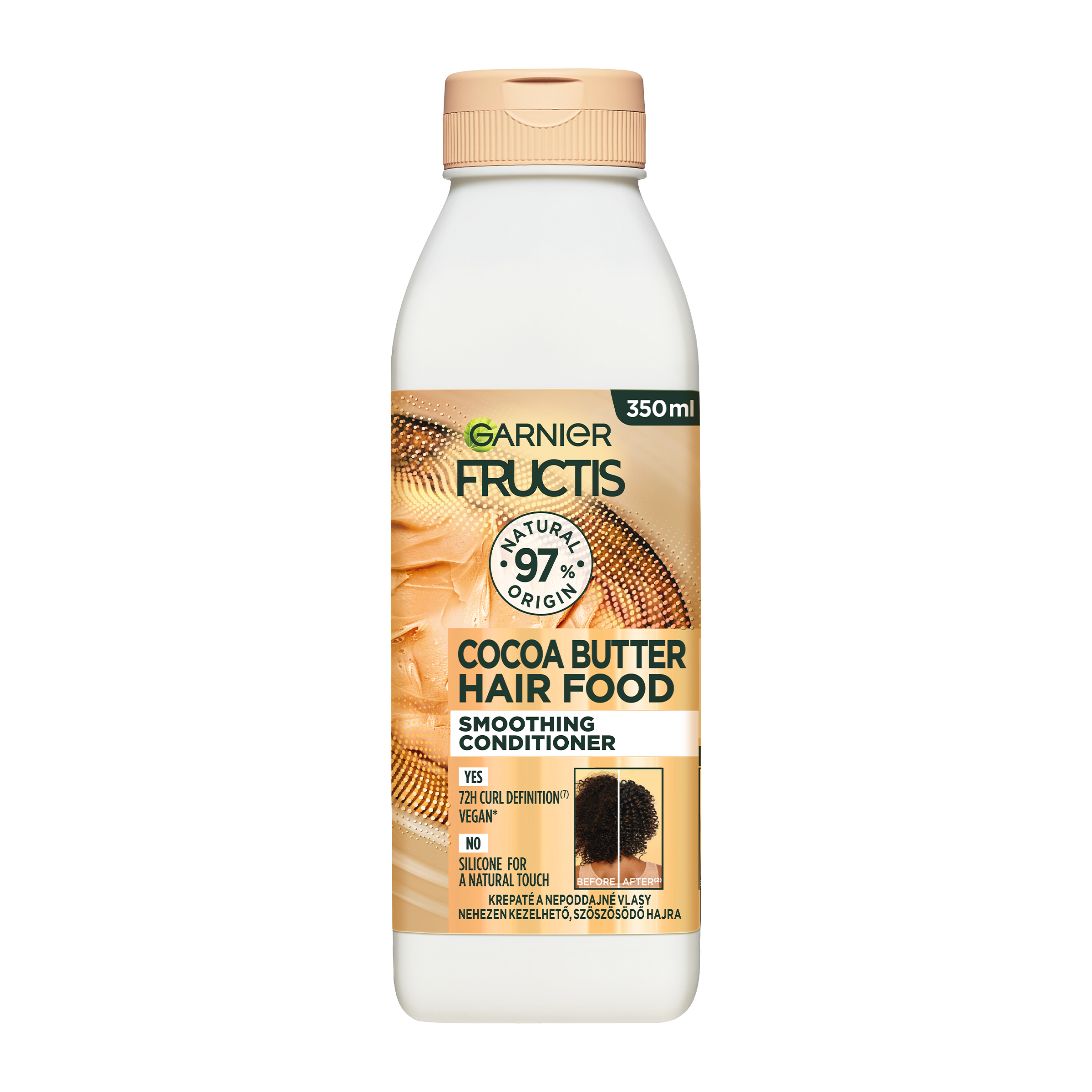 Uhlazení vlasů a obnovení vln: Fructis představuje veganský* Hair Food balzám z 97 % přírodního původu: jeho lehká textura okamžitě proniká do vlasů a zanechává je uhlazené a snadno rozčesatelné.