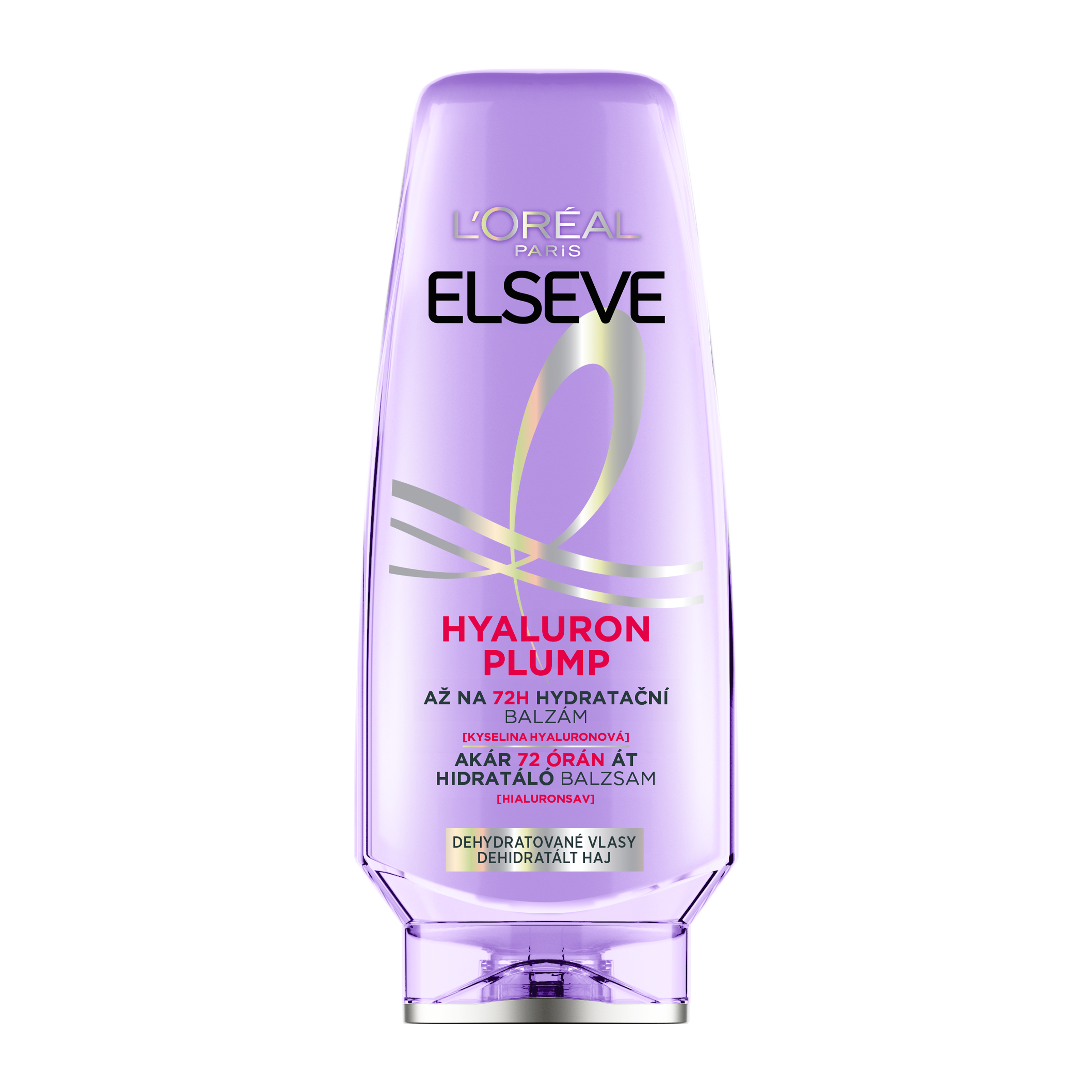 Vlasy jako bez života? To je známka dehydratovaných vlasů. Hydratační balzám Elseve Hyaluron Plump okamžitě rozčesává vlasy a hydratuje je až po dobu 72 hodin**, pro lesklejší, 10x více hydratované** vlasy plné života bez zatížení. Kyselina hyaluronová se nachází přirozeně v těle, je schopná vázat až 1000x více vody, než sama váží a pomáhá vlasům znovu dodat hydrataci. **Instrumentální test na šamponu + balzámu.