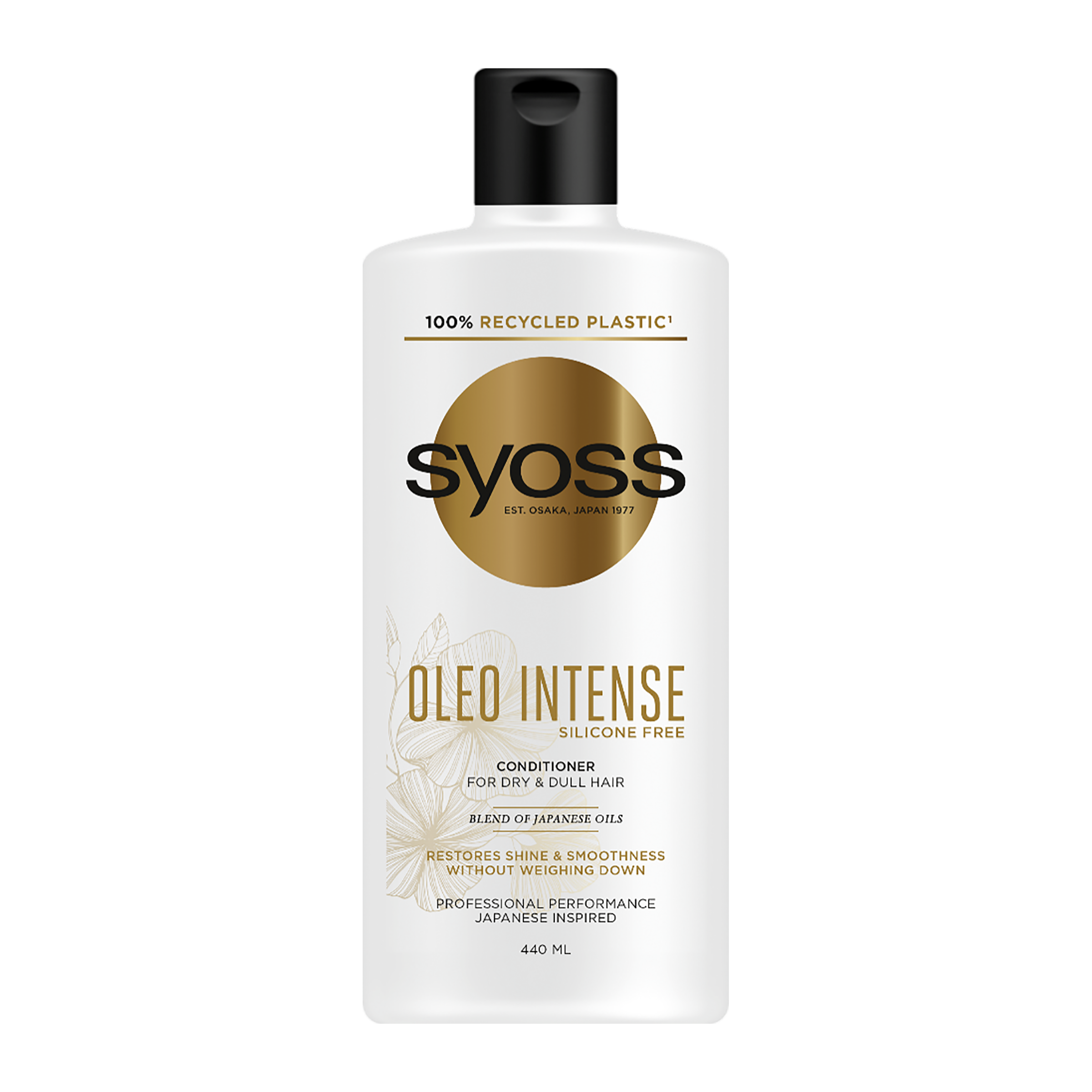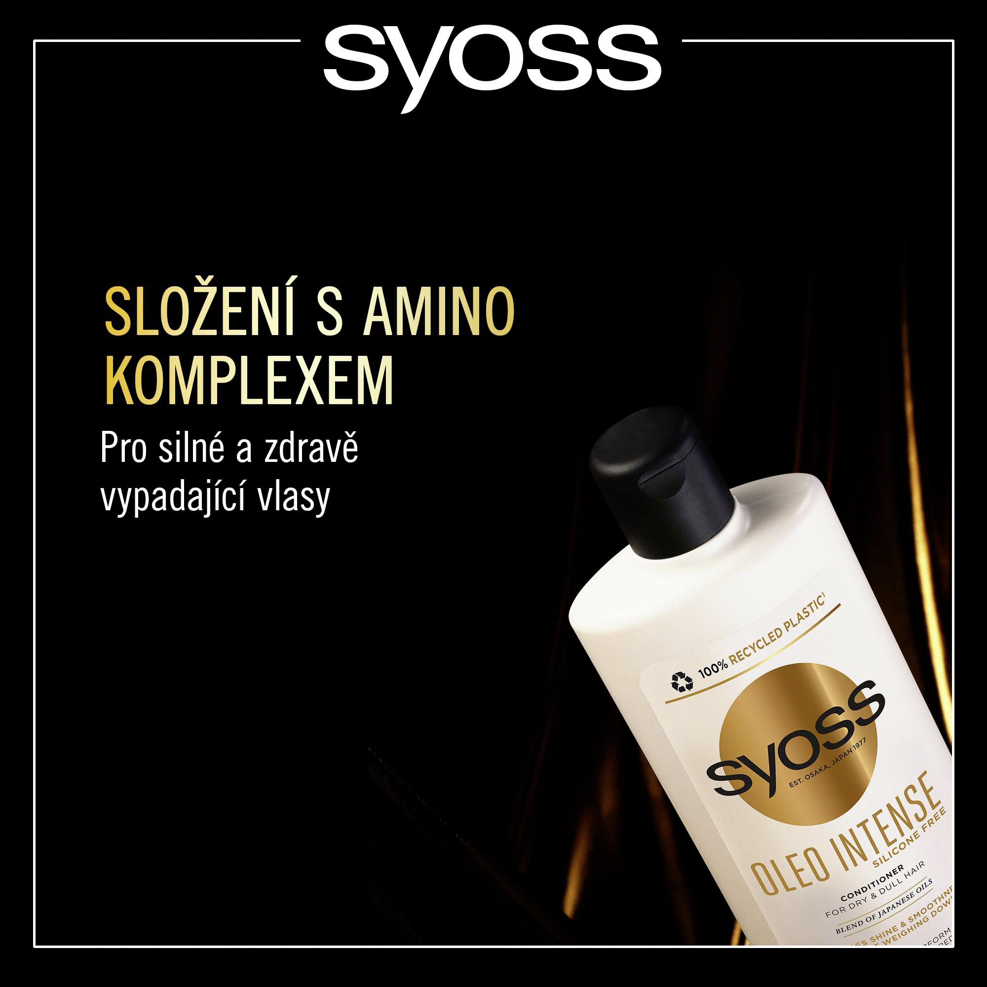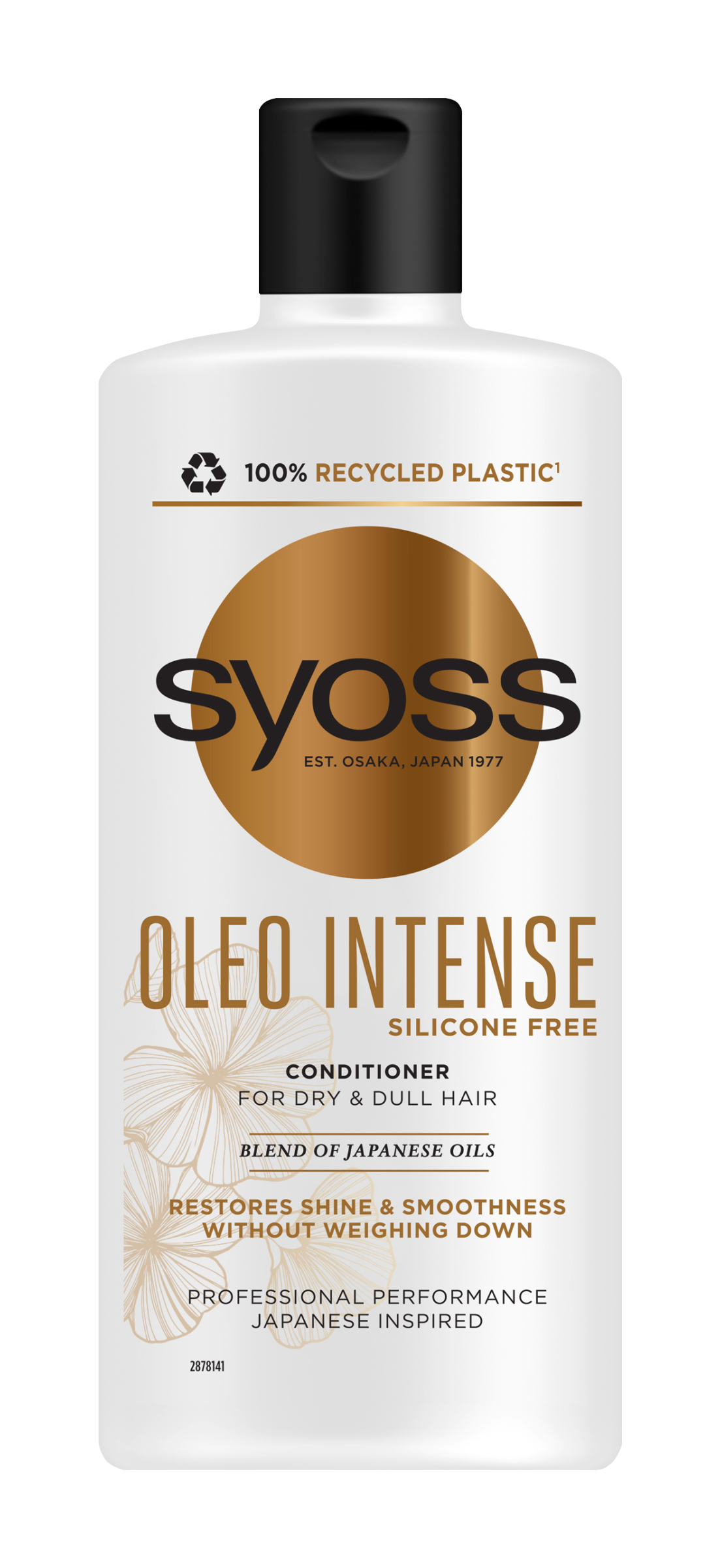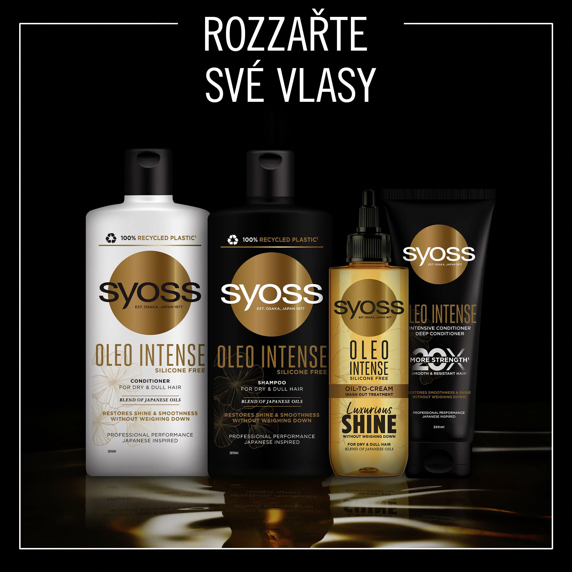 Syoss Oleo Intense kondicionér pro suché nebo matné vlasy. Složení bez silikonu se směsí japonských olejů dodává vlasům až 2x více lesku* a hebkosti na dotek. *v porovnání s neošetřenými vlasy, v kombinaci se šamponem Oleo Intense.