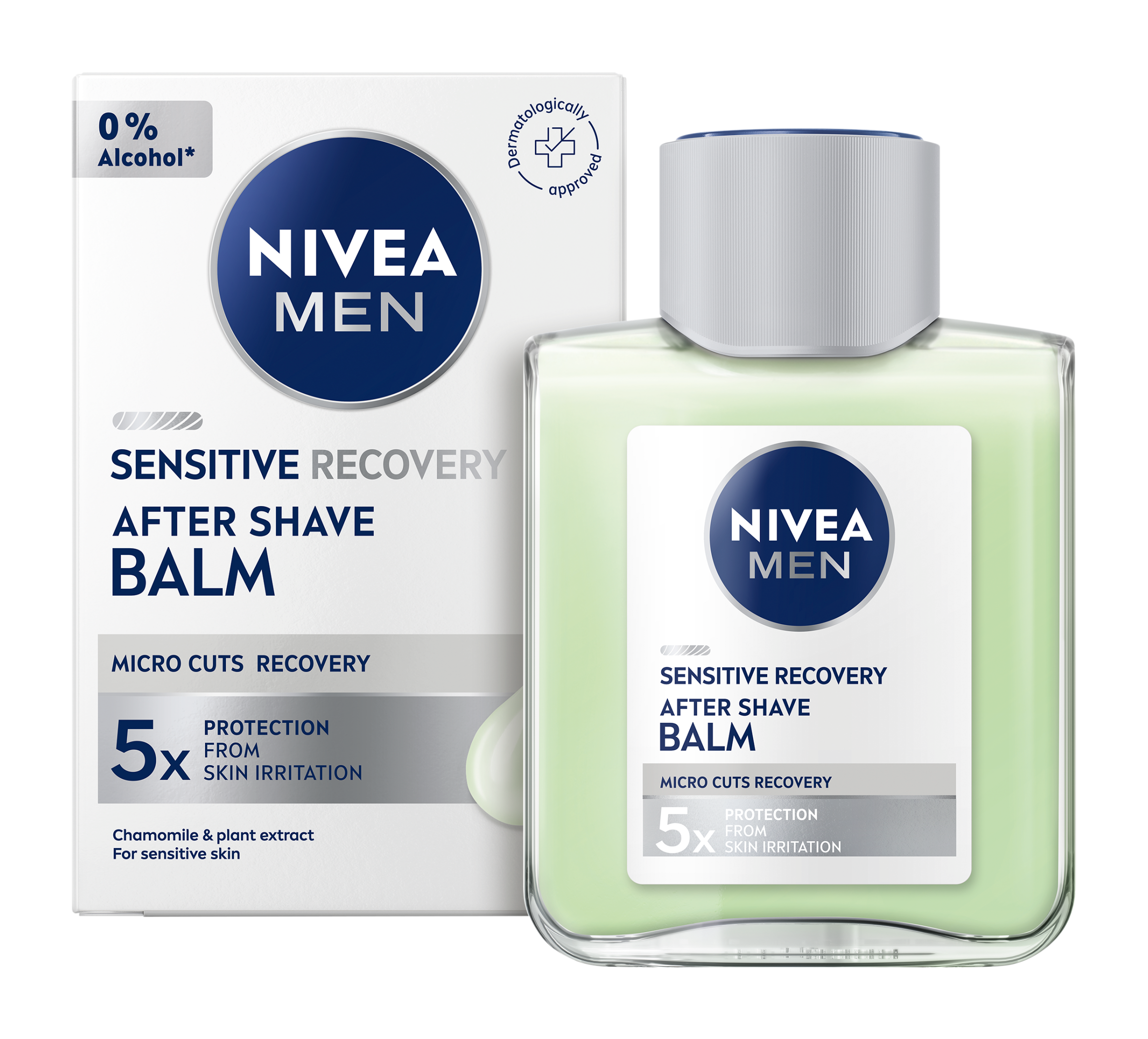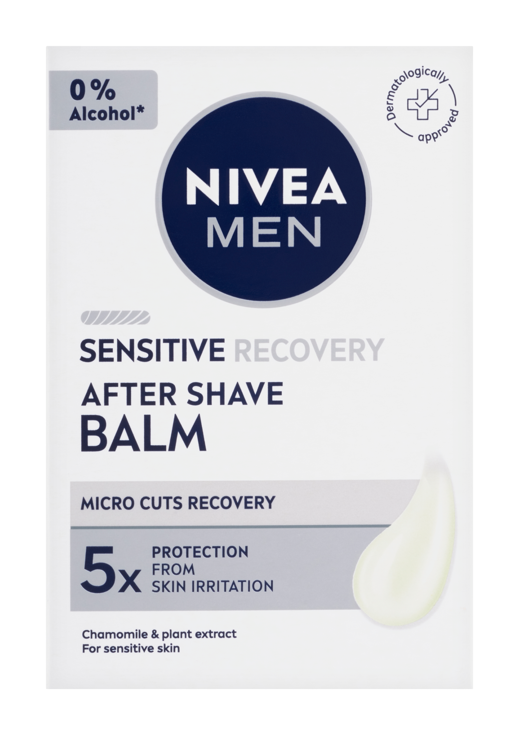 Nivea® Men Balzám po holení Sensitive Recovery. Péče po holení podporuje rychlé obnovení pleti: Podporuje regeneraci drobných pořezání. Dodá 24h hydrataci. Zajistí 5x ochranu před podrážděním pleti: pálení, zarudnutí, suchá pleť, napjatost a svědění. Pro dlouhotrvající komfort pleti. Neobsahuje ethylalkohol.