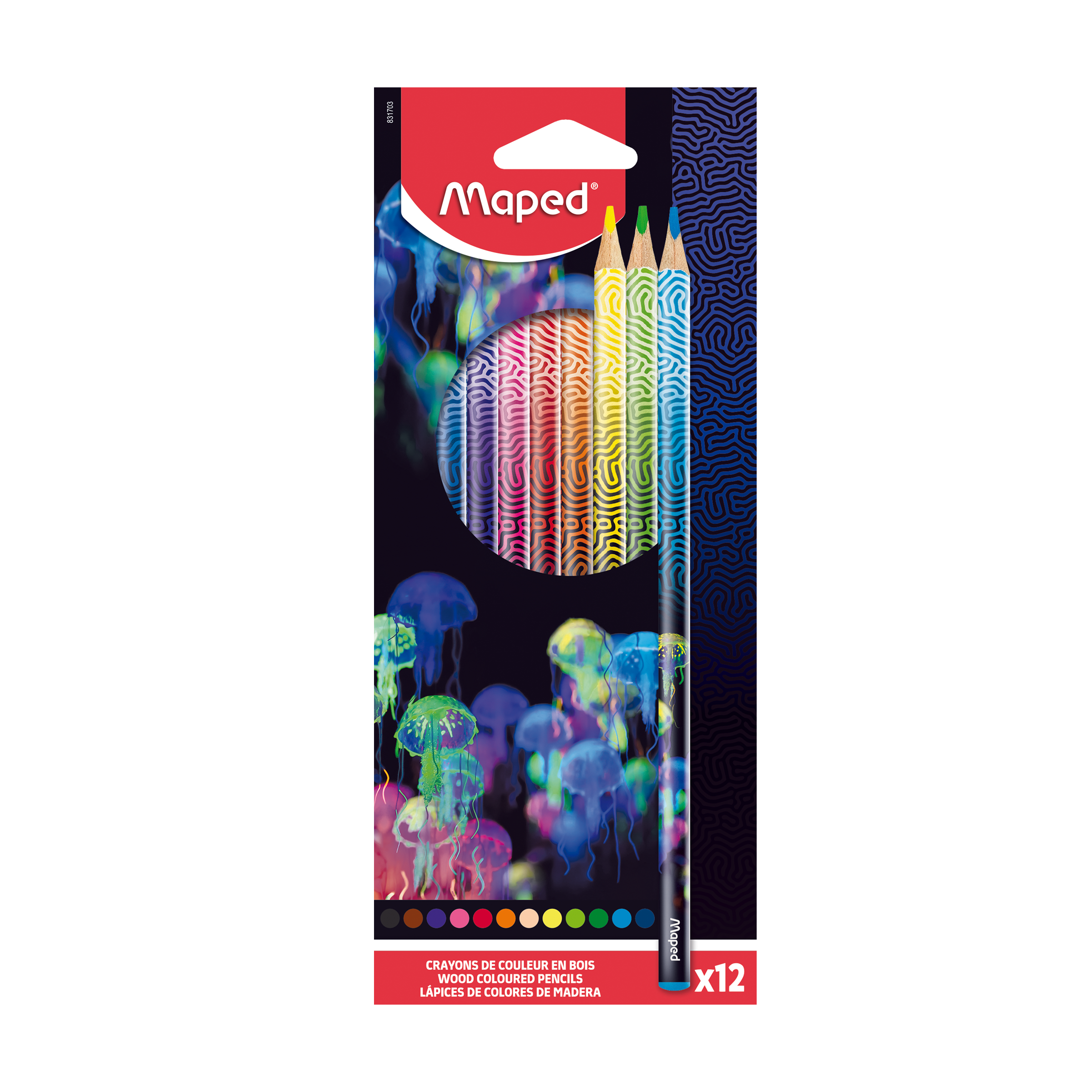 Sada 12 kusů bezdřevých pastelek pro praváky i leváky v atraktivním motivu Deepsea. Pastelky mají ergonomické trojhranné tělo pro snadný úchop, měkkou odolnou tuhu o tloušťce 2,9 mm, jasné barvy.