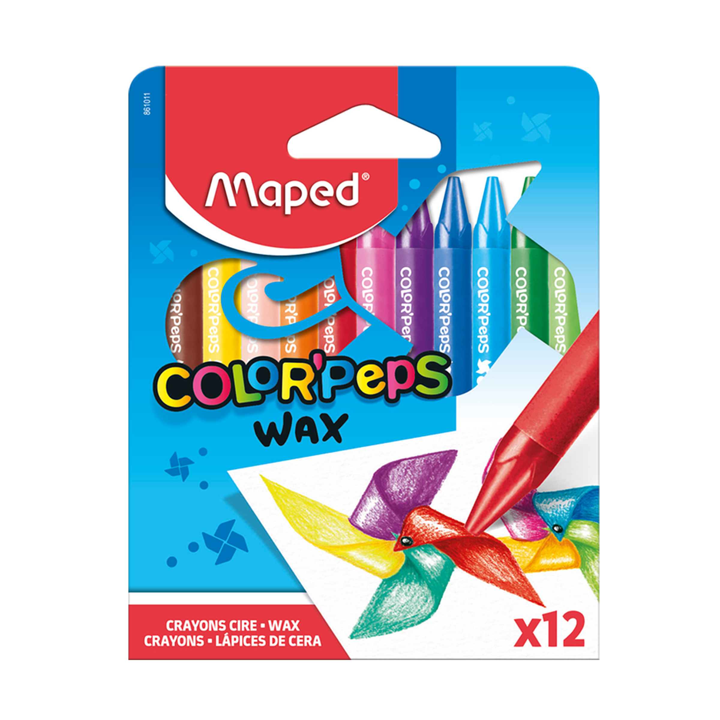 Voskovky z měkkého vosku s trojhranným tělem o průměru 9 mm v jasných barvách. Nezanechávají stopy na rukou. Tělo voskovky je kryto papírem. Určeno pro děti od 3 let. Balení obsahuje 12 voskovek Maped v různých barvách.