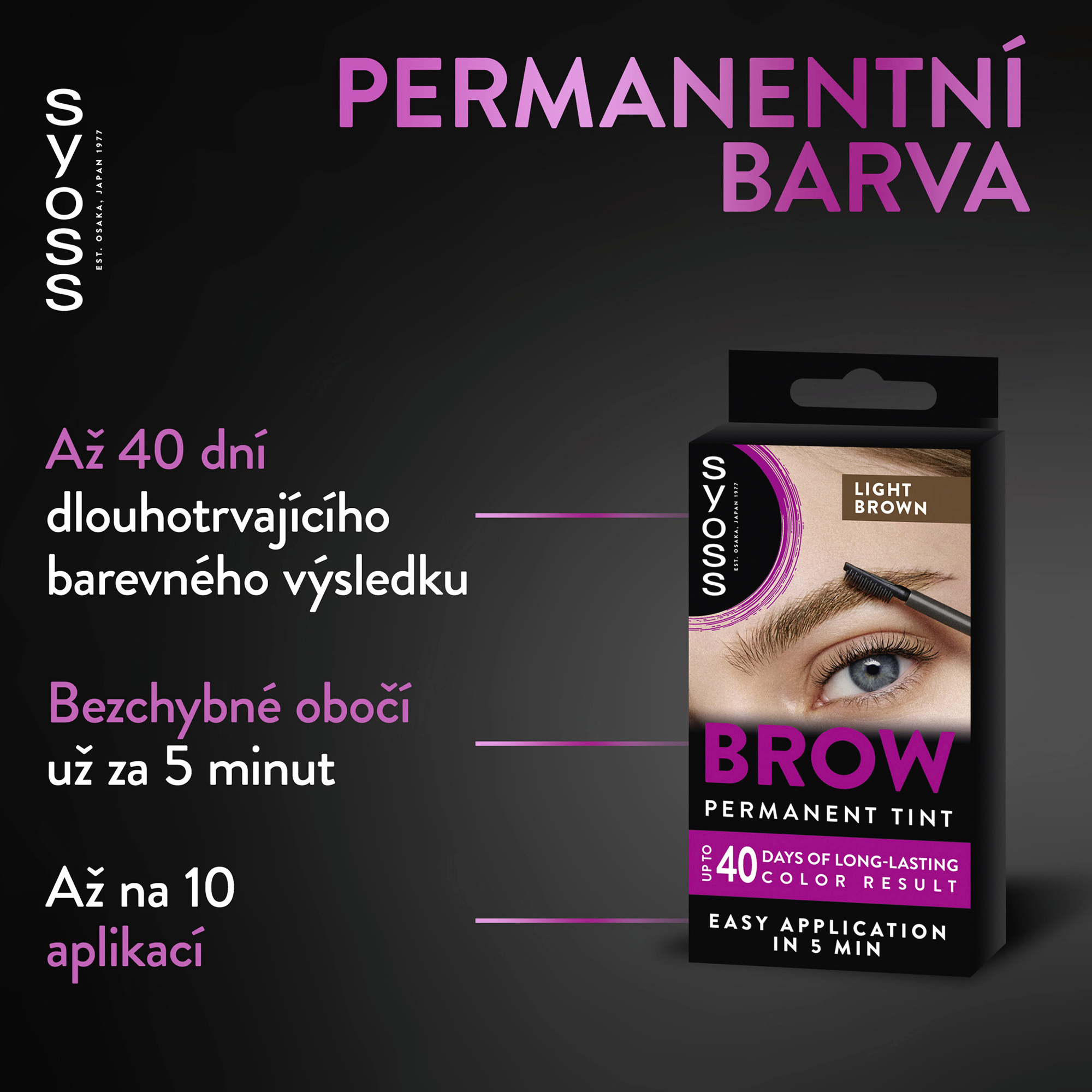 Syoss Brow Tint Světle hnědý - Permanentní barvení obočí! Získejte výraznější obočí z pohodlí domova za pouhých 5 minut. Tato receptura na obočí je odolná vůči vodě a rozmazání, což zaručuje perfektně zbarvené obočí. Díky kompaktnímu kartáčku s precizním nanášením je aplikace rychlá a jednoduchá, a dosáhnete trvalého barevného výsledku. Syoss Brow Permanent Tint je navržený pro profesionální barevné výsledky, které vydrží až 40 dní. Pro intenzivnější obočí. TIP: Vyberte si barvu, která odpovídá barvě vašich vlasů nebo je o něco tmavší, abyste se vyhnuli nepřirozeným výsledkům.