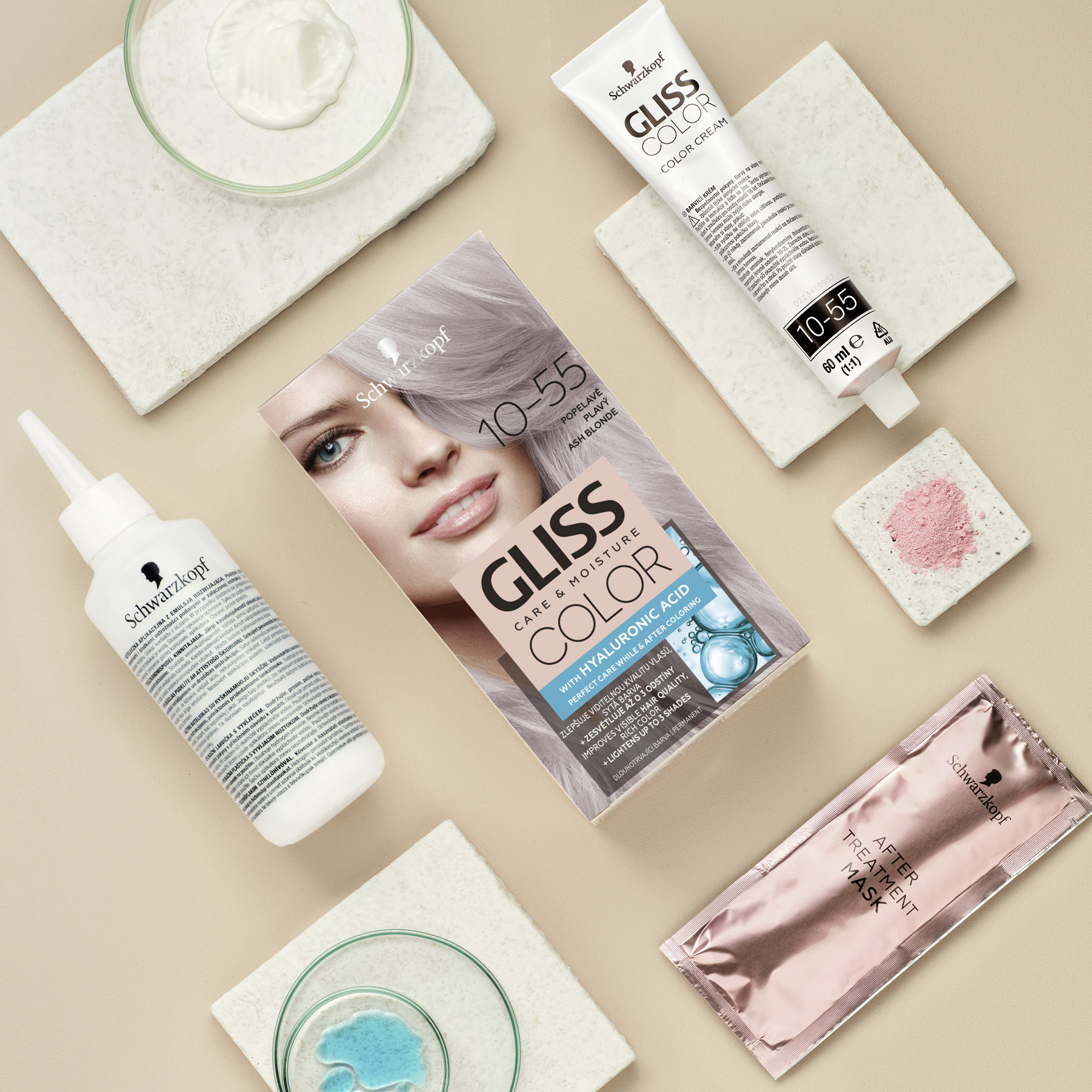 Značka Gliss se již několik desetiletí specializuje na regeneraci vlasů a její jméno je již od roku 1952 spojováno s kvalitní péčí o vlasy a neustálou inovací. Odborné znalosti společnosti Schwarzkopf v oblasti barvení vlasů a zkušenosti značky Gliss ohledně vlasové regenerace dohromady tak vytvářejí inovativní kombinaci – Gliss Color, první barvu na vlasy od značky Gliss.