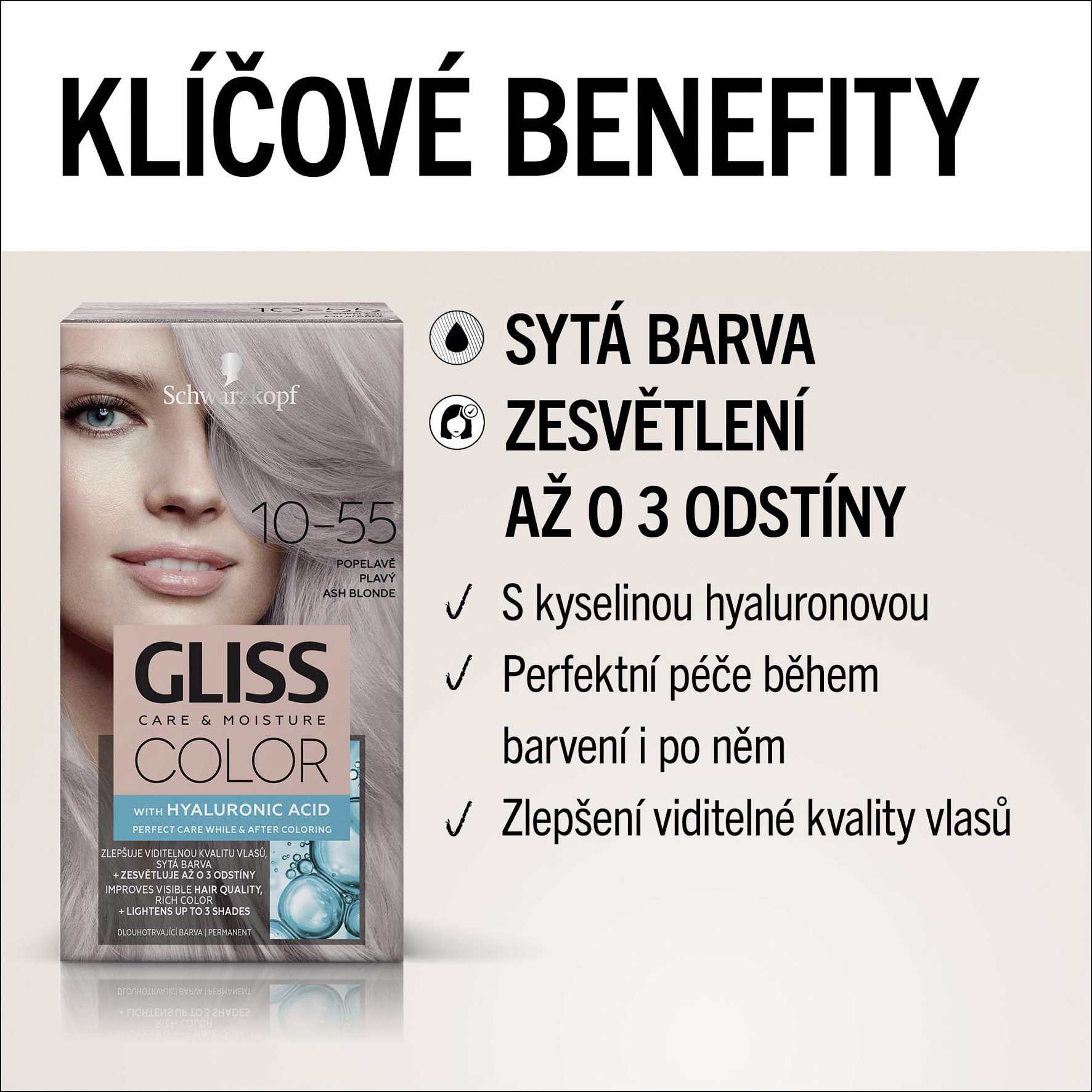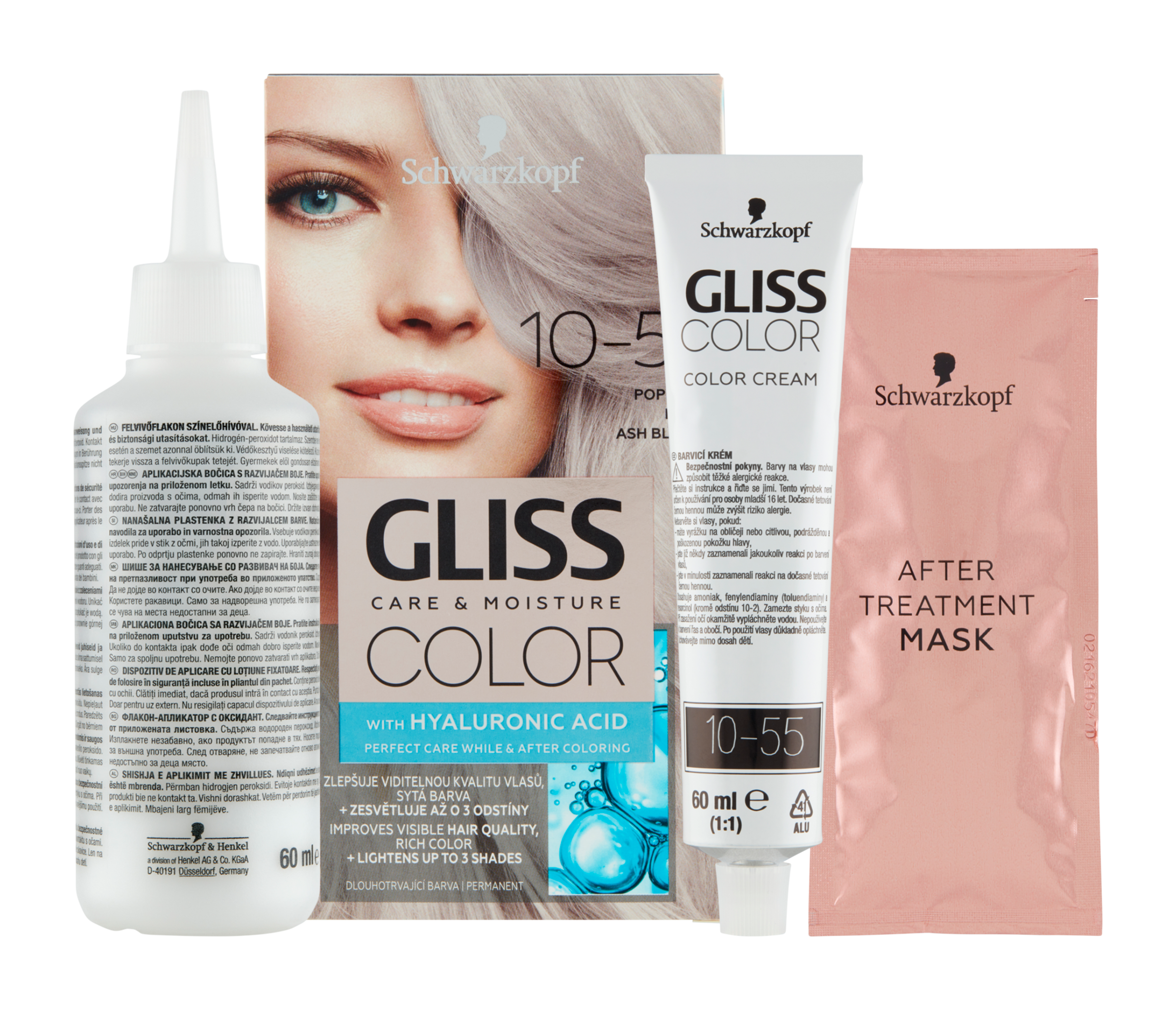 Dlouhotrvající barva na vlasy Gliss Color s komplexem kyseliny hyaluronové, známé pro své hydratační vlastnosti, nejen chrání vlasy před poškozením, ale také o ně pečuje již během barvení i po něm. Receptura barev na vlasy Gliss Color obsahuje speciální systém Color Care, díky němuž mohou barevné pigmenty proniknout hluboko do vlasových vláken. Výsledkem je tak hloubková péče a sytý, dlouhotrvající barevný výsledek. Tento odstín je vhodný pro extra světle plavou až střední blond barvu vlasů, nedoporučuje se pro šedivé vlasy.
