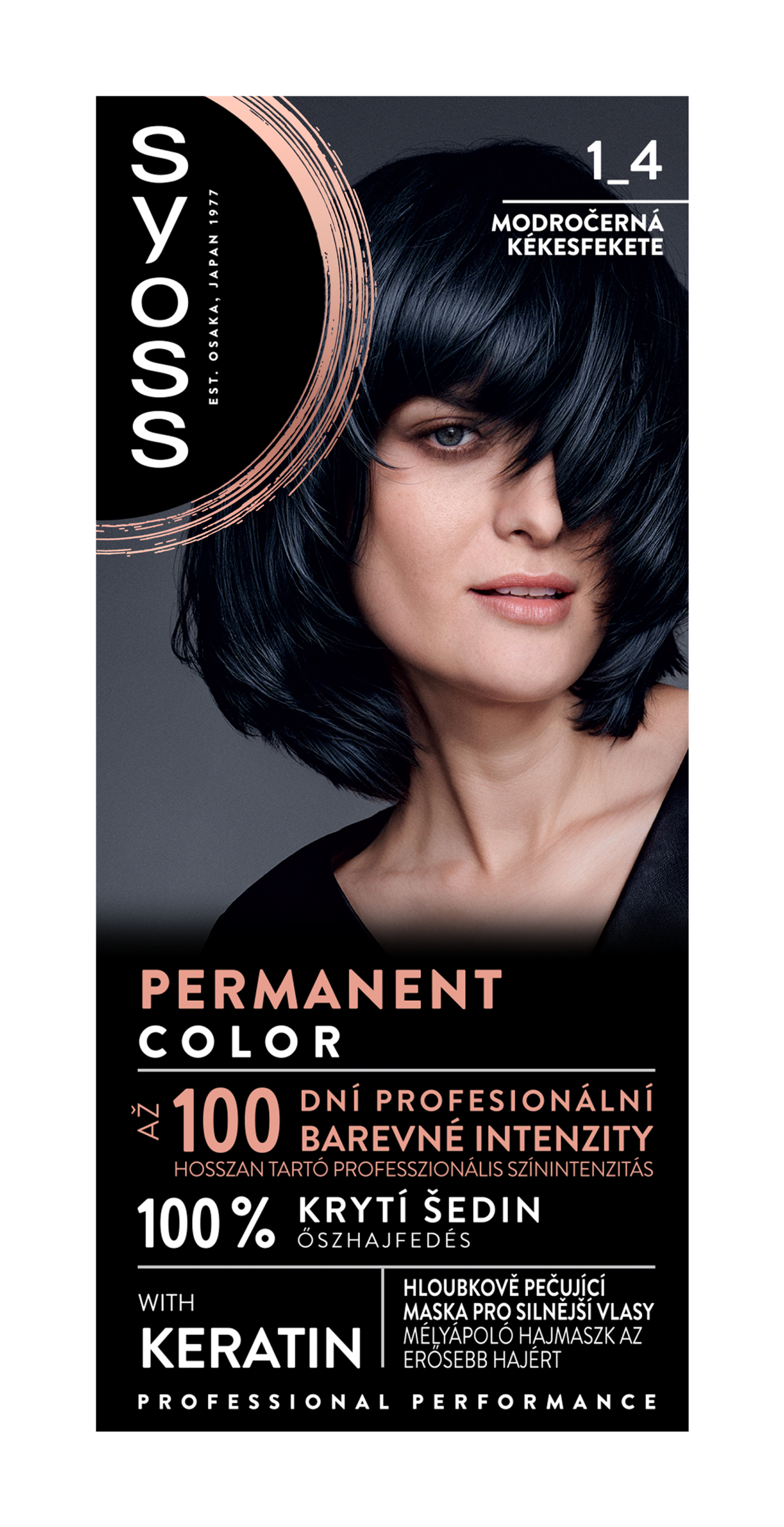 Permanentní barva na vlasy se 100% krytím šedin. Permanentní barvy na vlasy Syoss, s více než 45letou historií, jsou navrženy pro profesionální výkon. Vaše vlasy budou díky Syoss vypadat a působit plné života. Barvicí krém s bohatými barevnými pigmenty a keratinem proniká hluboko do vlasového vlákna a dodává vlasům profesionální barevnou intenzitu až na 100 dní a 100% krytí šedin. Součástí balení je také hloubkově pečující maska obohacená o keratin, která hloubkově posiluje vlasy zevnitř a vyhlazuje jejich povrch. Díky této masce jsou pigmenty uzamčeny ve vlasovém vlákně, a tím přináší ty nejjasnější a nejsytější Syoss barvy. Tato modročerná barva na vlasy se doporučuje pro středně hnědé až černé vlasy.