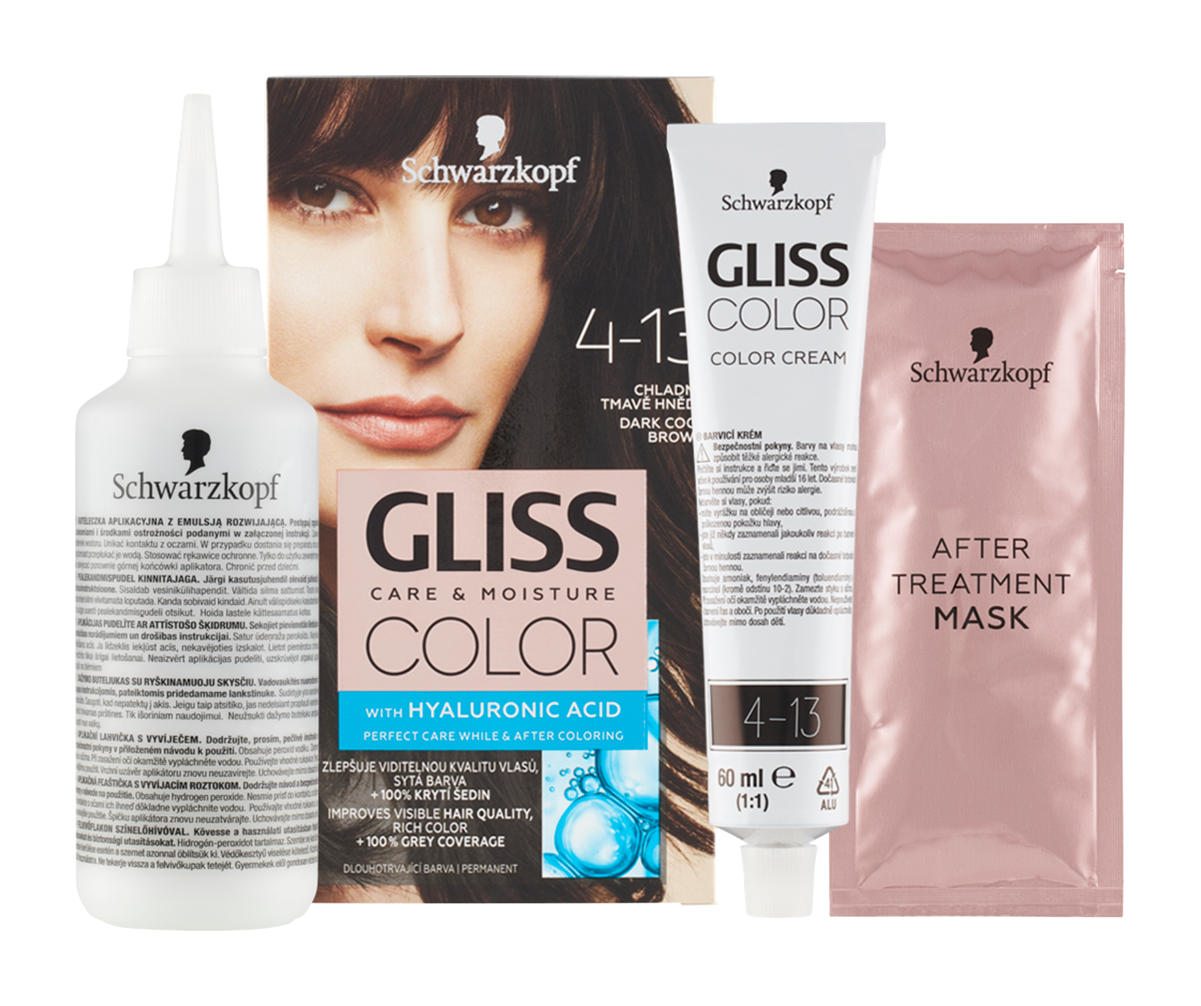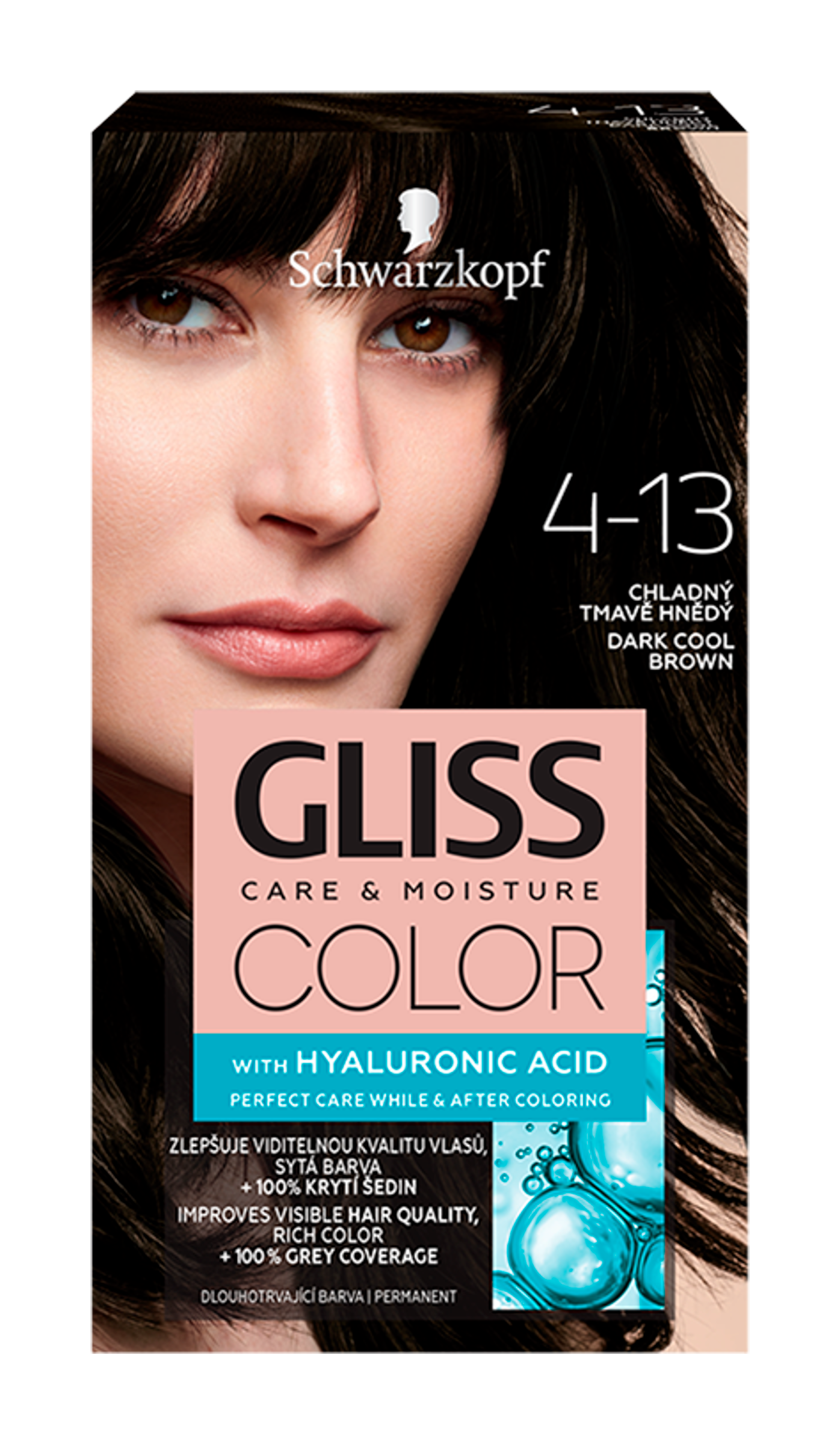 Dlouhotrvající barva na vlasy Gliss Color s komplexem kyseliny hyaluronové, známé pro své hydratační vlastnosti, nejen chrání vlasy před poškozením, ale také o ně pečuje již během barvení i po něm. Receptura barev na vlasy Gliss Color obsahuje speciální systém Color Care, díky němuž mohou barevné pigmenty proniknout hluboko do vlasových vláken. Výsledkem je tak hloubková péče a sytý, dlouhotrvající barevný výsledek. Tento odstín je vhodný pro středně hnědou až černohnědou barvu vlasů, vhodný až pro zcela šedivé vlasy.