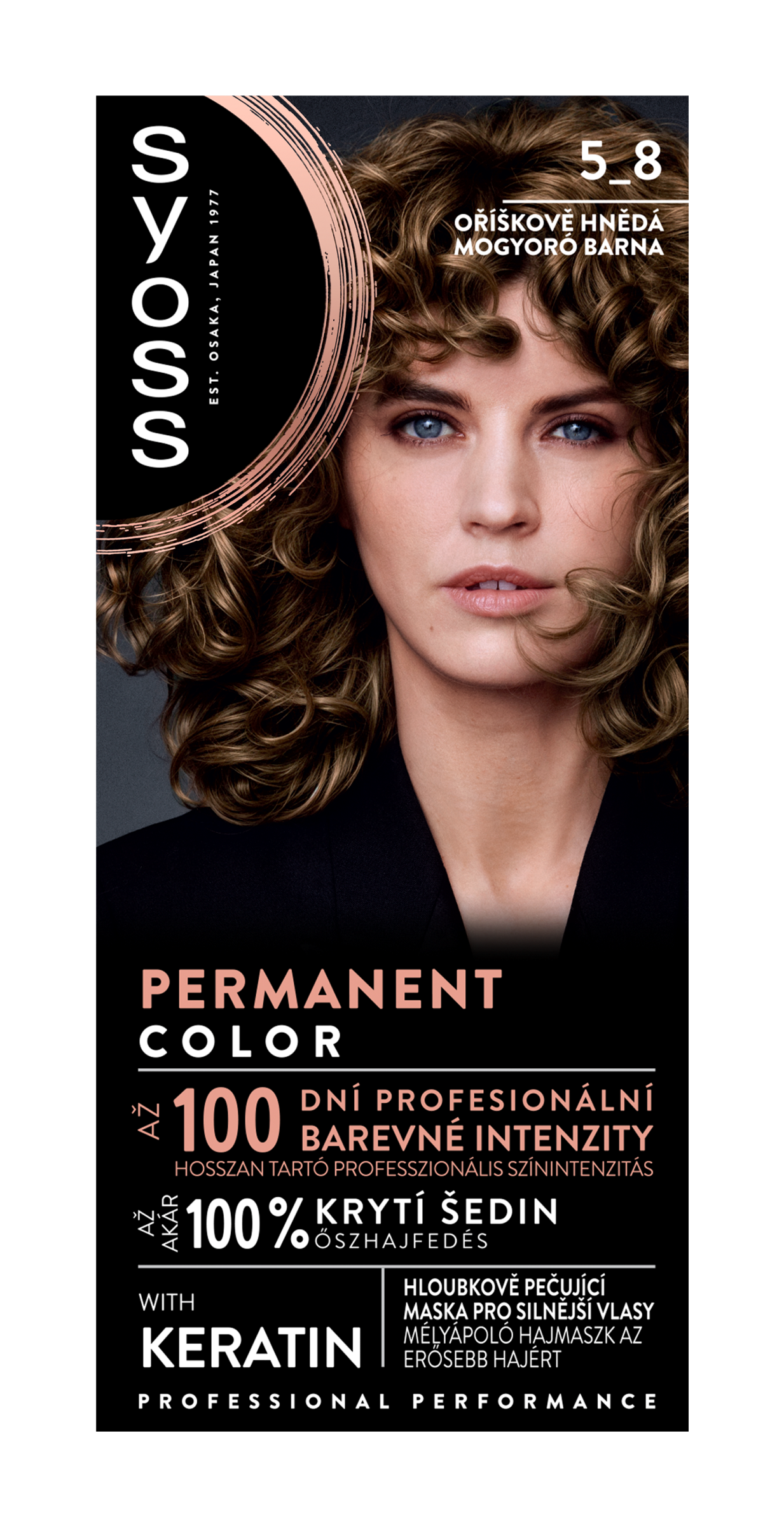 Permanentní barva na vlasy s až 100% krytím šedin. Permanentní barvy na vlasy Syoss, s více než 45letou historií, jsou navrženy pro profesionální výkon. Vaše vlasy budou díky Syoss vypadat a působit plné života. Barvicí krém s bohatými barevnými pigmenty a keratinem proniká hluboko do vlasového vlákna a zajišťuje až 100 dní profesionální barevné intenzity a až 100% krytí šedin. Součástí balení je také hloubkově pečující maska obohacená o keratin, která hloubkově posiluje vlasy zevnitř a vyhlazuje jejich povrch. Pigmenty jsou uzamčeny ve vlasovém vlákně, což odhaluje nejživější a nejbohatší odstíny, které Syoss nabízí. Tato oříškově hnědá barva na vlasy se doporučuje pro tmavě blond až středně hnědé vlasy.