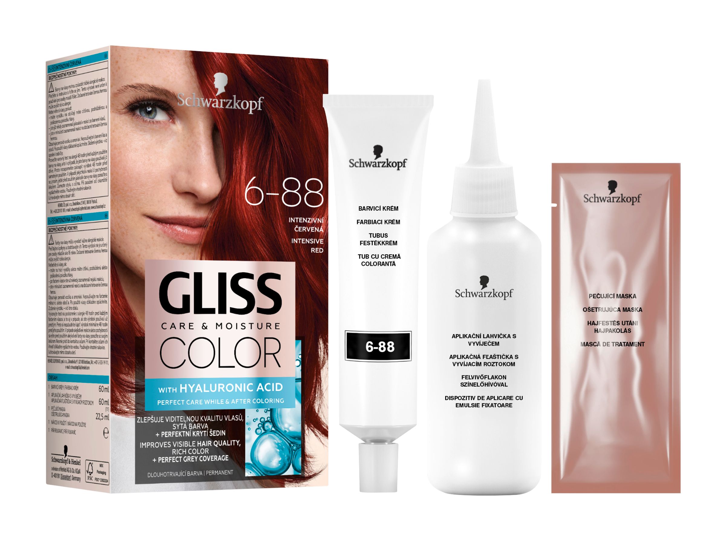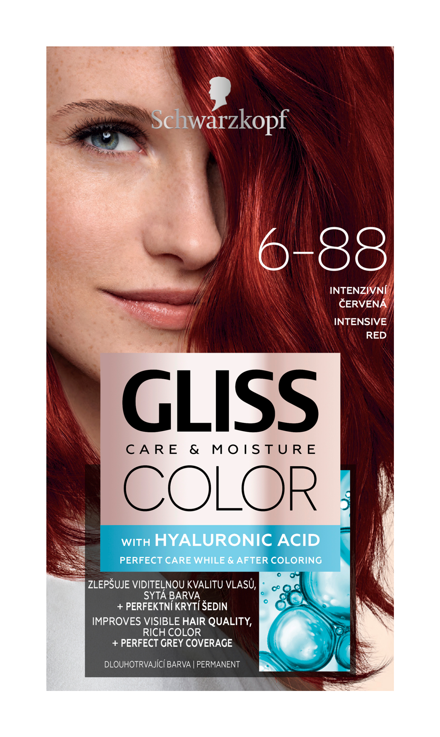 Dlouhotrvající barva na vlasy Gliss Color s komplexem kyseliny hyaluronové, známé pro své hydratační vlastnosti, nejen chrání vlasy před poškozením, ale také o ně pečuje již během barvení i po něm. Receptura barev na vlasy Gliss Color obsahuje speciální systém Color Care, díky němuž mohou barevné pigmenty proniknout hluboko do vlasových vláken. Výsledkem je tak hloubková péče a sytý, dlouhotrvající barevný výsledek.