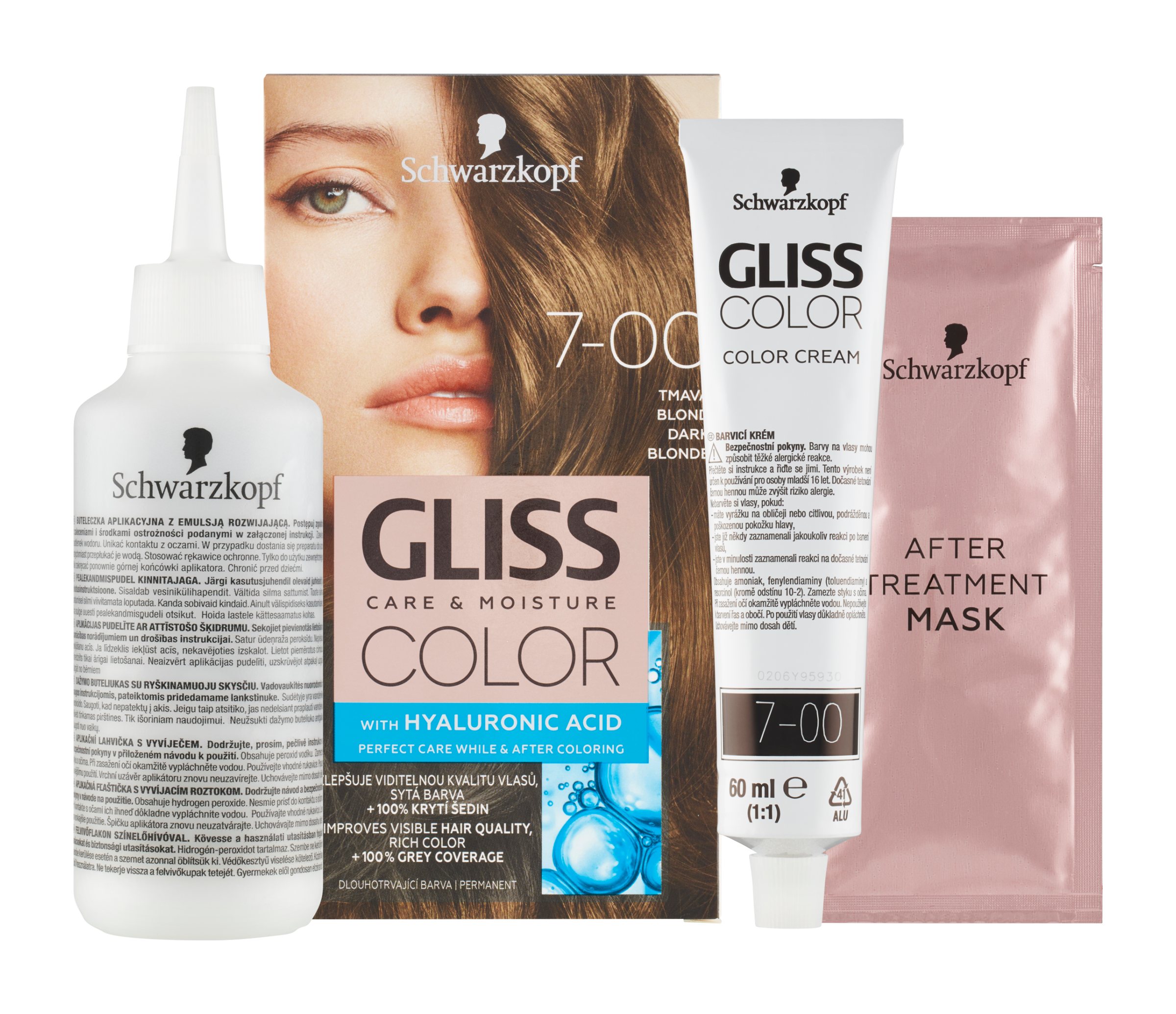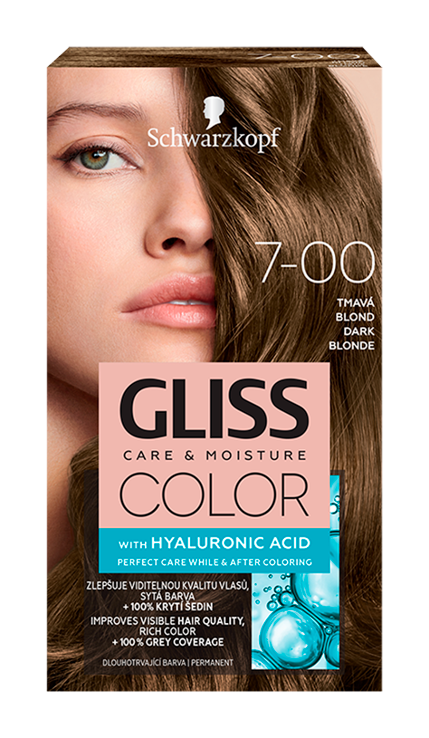 Dlouhotrvající barva na vlasy Gliss Color s komplexem kyseliny hyaluronové, známé pro své hydratační vlastnosti, nejen chrání vlasy před poškozením, ale také o ně pečuje již během barvení i po něm. Receptura barev na vlasy Gliss Color obsahuje speciální systém Color Care, díky němuž mohou barevné pigmenty proniknout hluboko do vlasových vláken. Výsledkem je tak hloubková péče a sytý, dlouhotrvající barevný výsledek. Tento odstín je vhodný pro střední blond až světle hnědou barvu vlasů, vhodný až pro zcela šedivé vlasy.