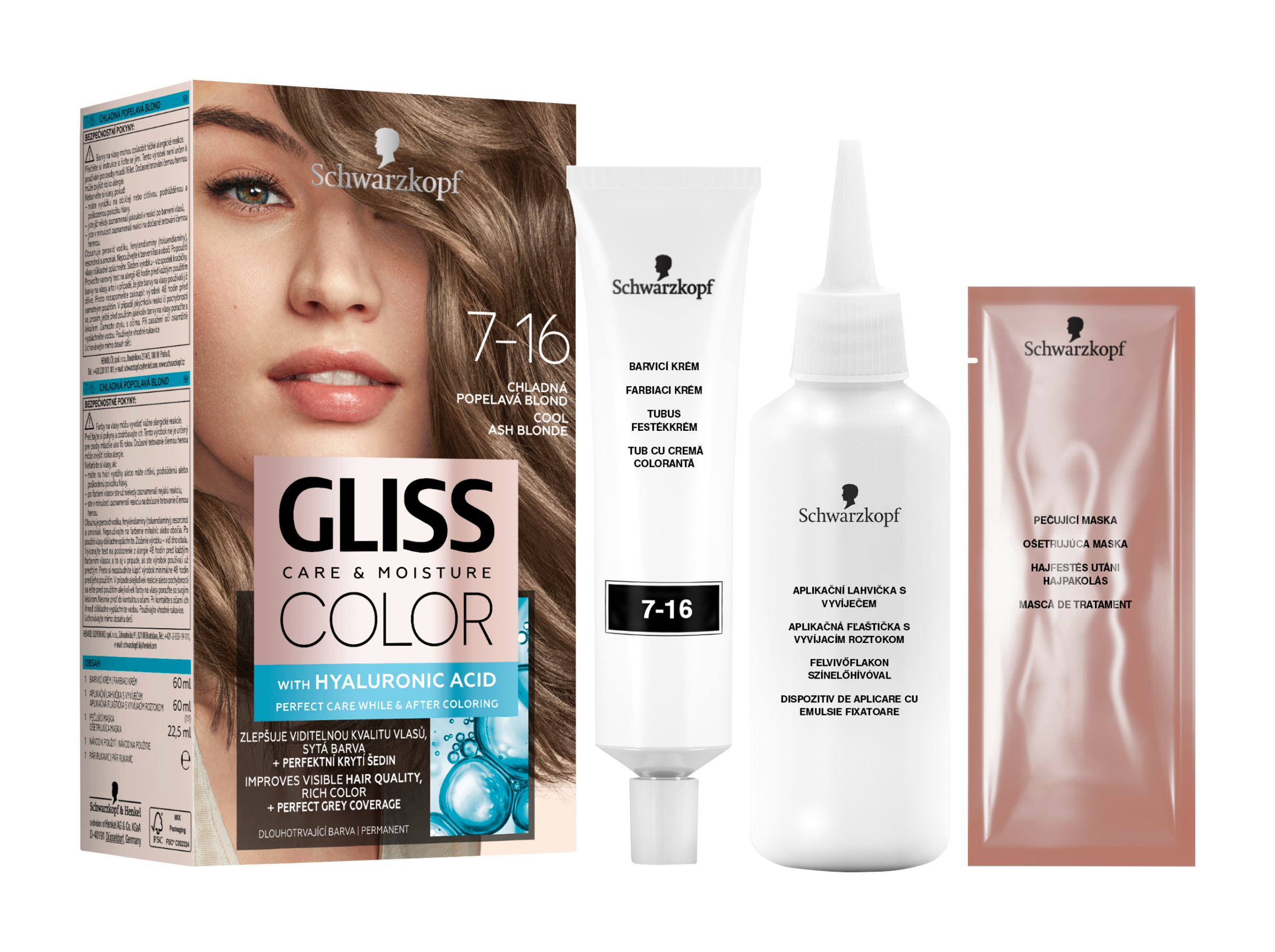 Dlouhotrvající barva na vlasy Gliss Color s komplexem kyseliny hyaluronové, známé pro své hydratační vlastnosti, nejen chrání vlasy před poškozením, ale také o ně pečuje již během barvení i po něm. Receptura barev na vlasy Gliss Color obsahuje speciální systém Color Care, díky němuž mohou barevné pigmenty proniknout hluboko do vlasových vláken. Výsledkem je tak hloubková péče a sytý, dlouhotrvající barevný výsledek.