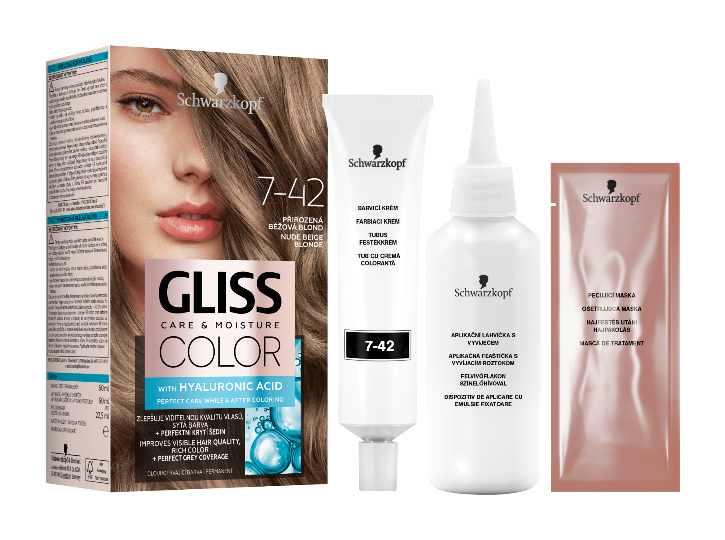 Dlouhotrvající barva na vlasy Gliss Color s komplexem kyseliny hyaluronové, známé pro své hydratační vlastnosti, nejen chrání vlasy před poškozením, ale také o ně pečuje již během barvení i po něm. Receptura barev na vlasy Gliss Color obsahuje speciální systém Color Care, díky němuž mohou barevné pigmenty proniknout hluboko do vlasových vláken. Výsledkem je tak hloubková péče a sytý, dlouhotrvající barevný výsledek.