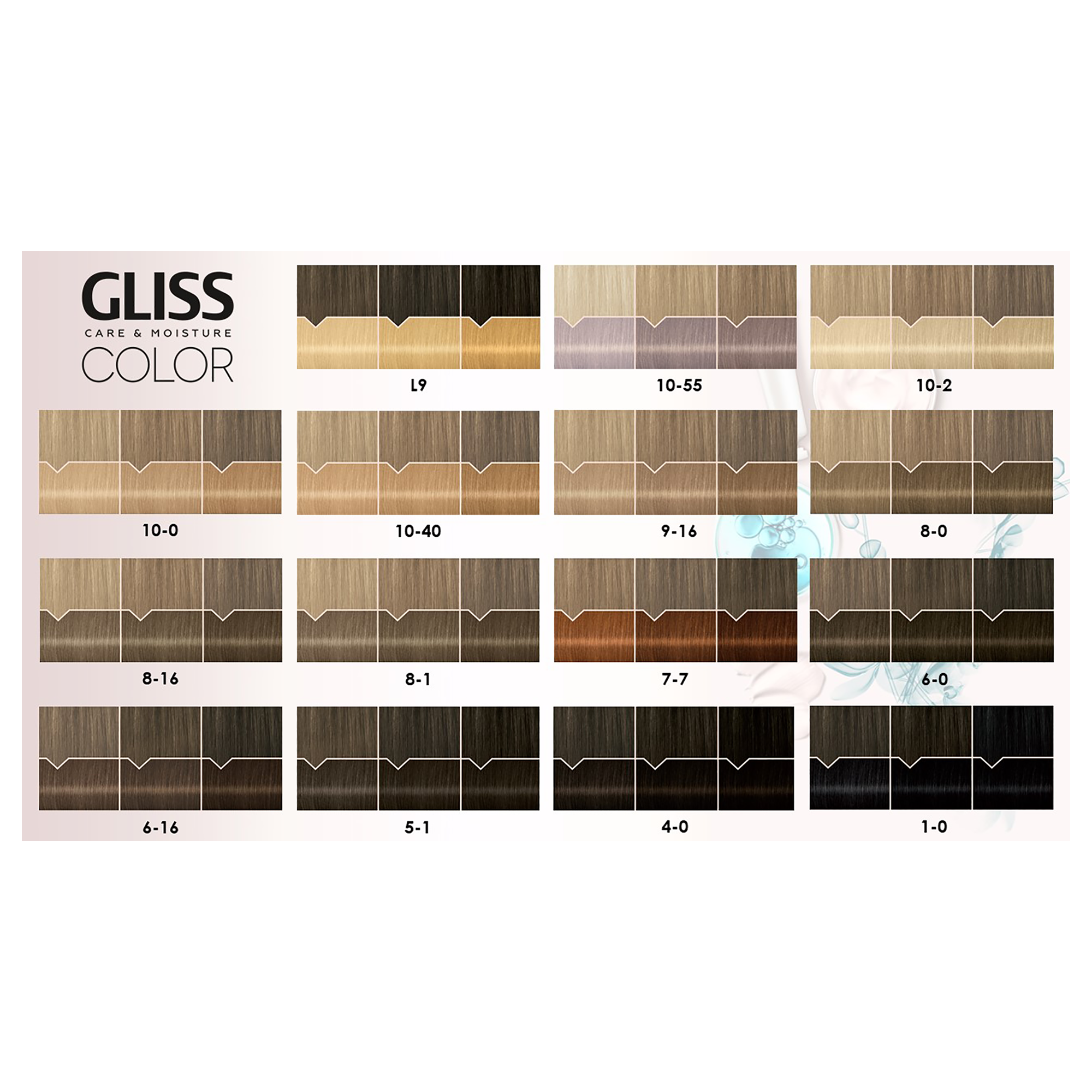 Značka Gliss se již několik desetiletí specializuje na regeneraci vlasů a její jméno je již od roku 1952 spojováno s kvalitní péčí o vlasy a neustálou inovací. Odborné znalosti společnosti Schwarzkopf v oblasti barvení vlasů a zkušenosti značky Gliss ohledně vlasové regenerace dohromady tak vytvářejí inovativní kombinaci – Gliss Color, první barvu na vlasy od značky Gliss.