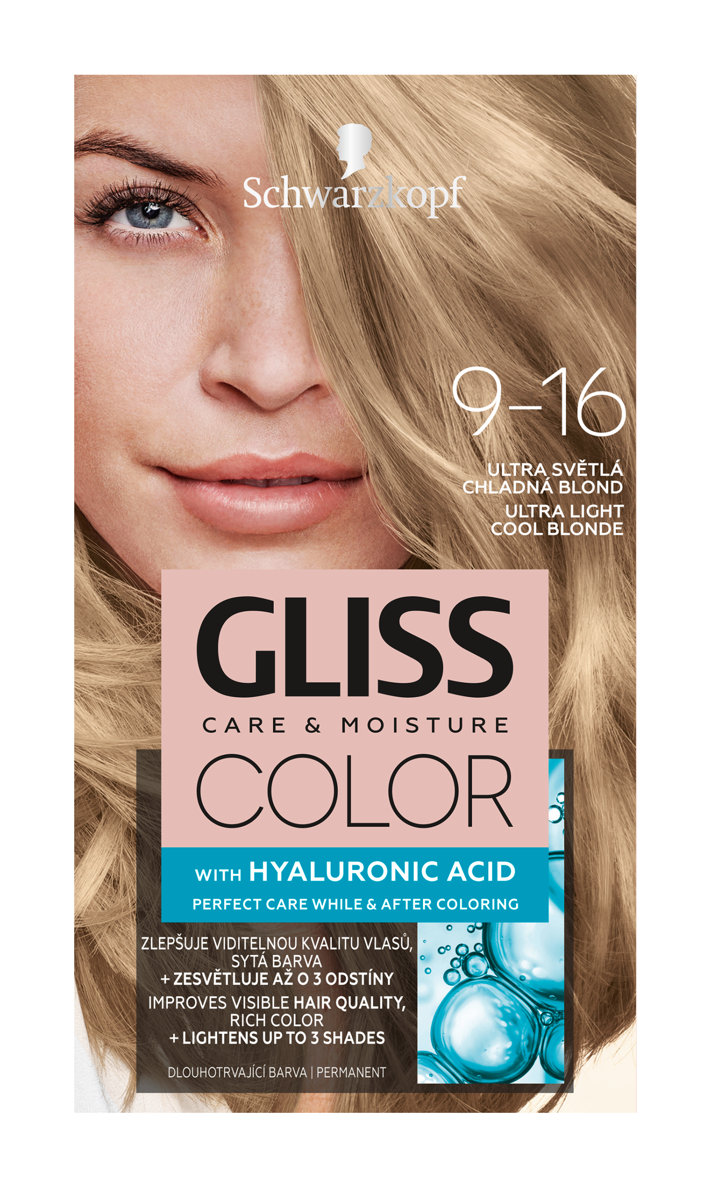 Dlouhotrvající barva na vlasy Gliss Color s komplexem kyseliny hyaluronové, známé pro své hydratační vlastnosti, nejen chrání vlasy před poškozením, ale také o ně pečuje již během barvení i po něm. Receptura barev na vlasy Gliss Color obsahuje speciální systém Color Care, díky němuž mohou barevné pigmenty proniknout hluboko do vlasových vláken. Výsledkem je tak hloubková péče a sytý, dlouhotrvající barevný výsledek. Tento odstín je vhodný pro světlou blond až tmavou blond barvu vlasů, nedoporučuje se pro šedivé vlasy.
