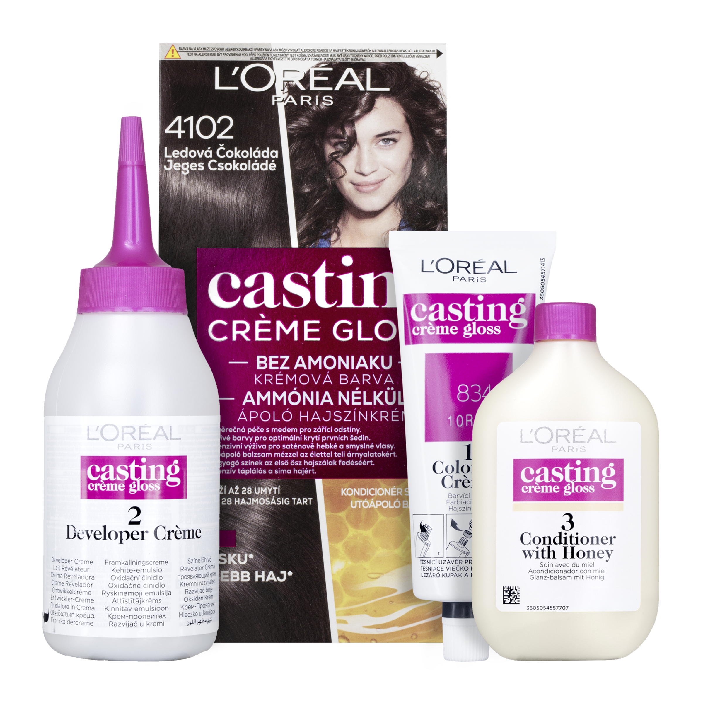 Jak na perfektní barvu a krásně lesklé vlasy? Barva na vlasy L’Oréal Paris Casting Crème Gloss představuje skvělý způsob, jak svým vlasům dodat zářivou barvu a bohatý lesk v pohodlí domova. Díky postupnému vymývání a patentovanému komplexu péče, který zabraňuje poškození vlasů, můžete odstíny klidně měnit podle nálady. Bez amoniaku pro příjemnou vůni. Vydrží až 28 umytí.