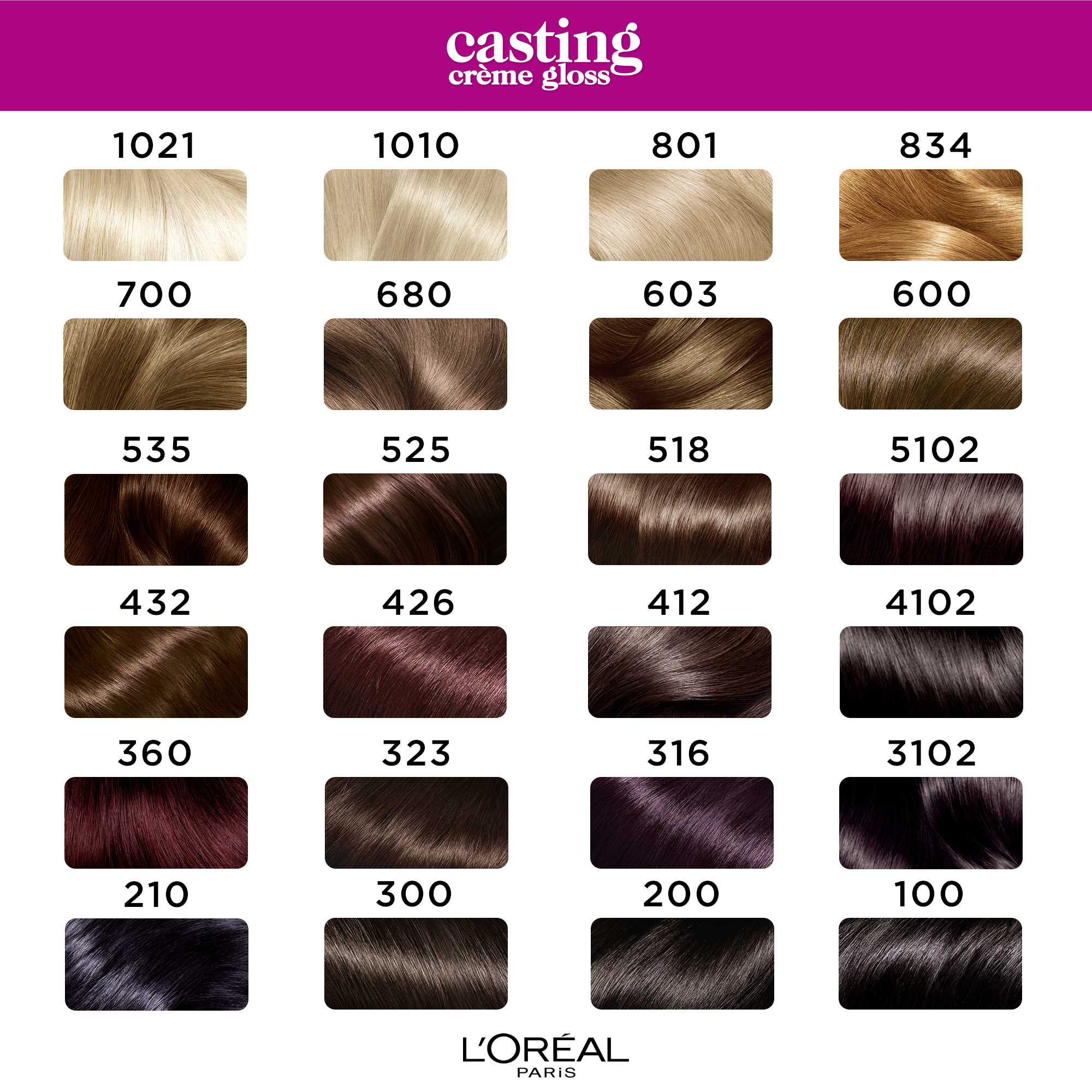 Barva na vlasy L’Oréal Paris Casting Crème Gloss představuje skvělý způsob, jak svým vlasům dodat zářivou barvu a bohatý lesk v pohodlí domova. Díky postupnému vymývání a patentovanému komplexu péče, který zabraňuje poškození vlasů, můžete odstíny klidně měnit podle nálady. Bez amoniaku pro příjemnou vůni. Vydrží až 28 umytí.