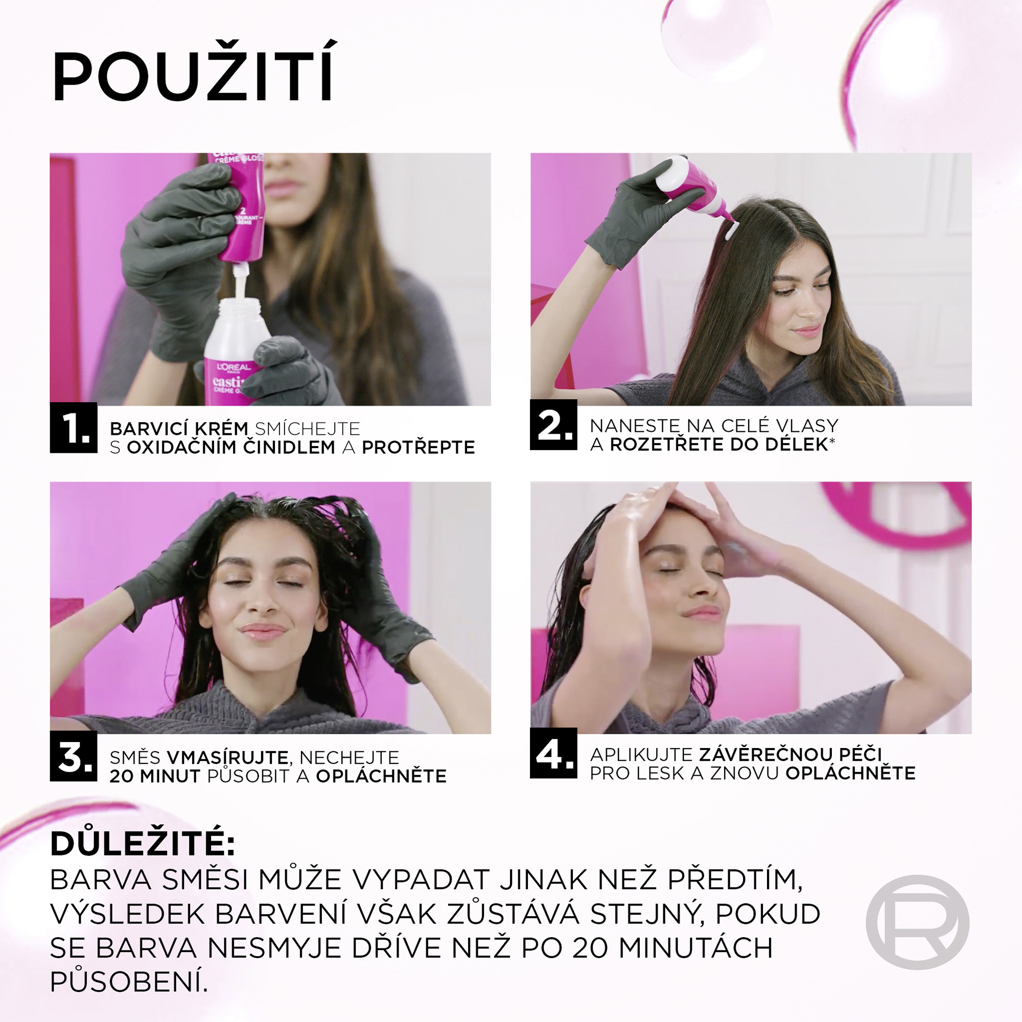 Vyhněte se kontaktu produktu s očima, ušima a obličejem. Nepoužívejte k barvení řas a obočí.