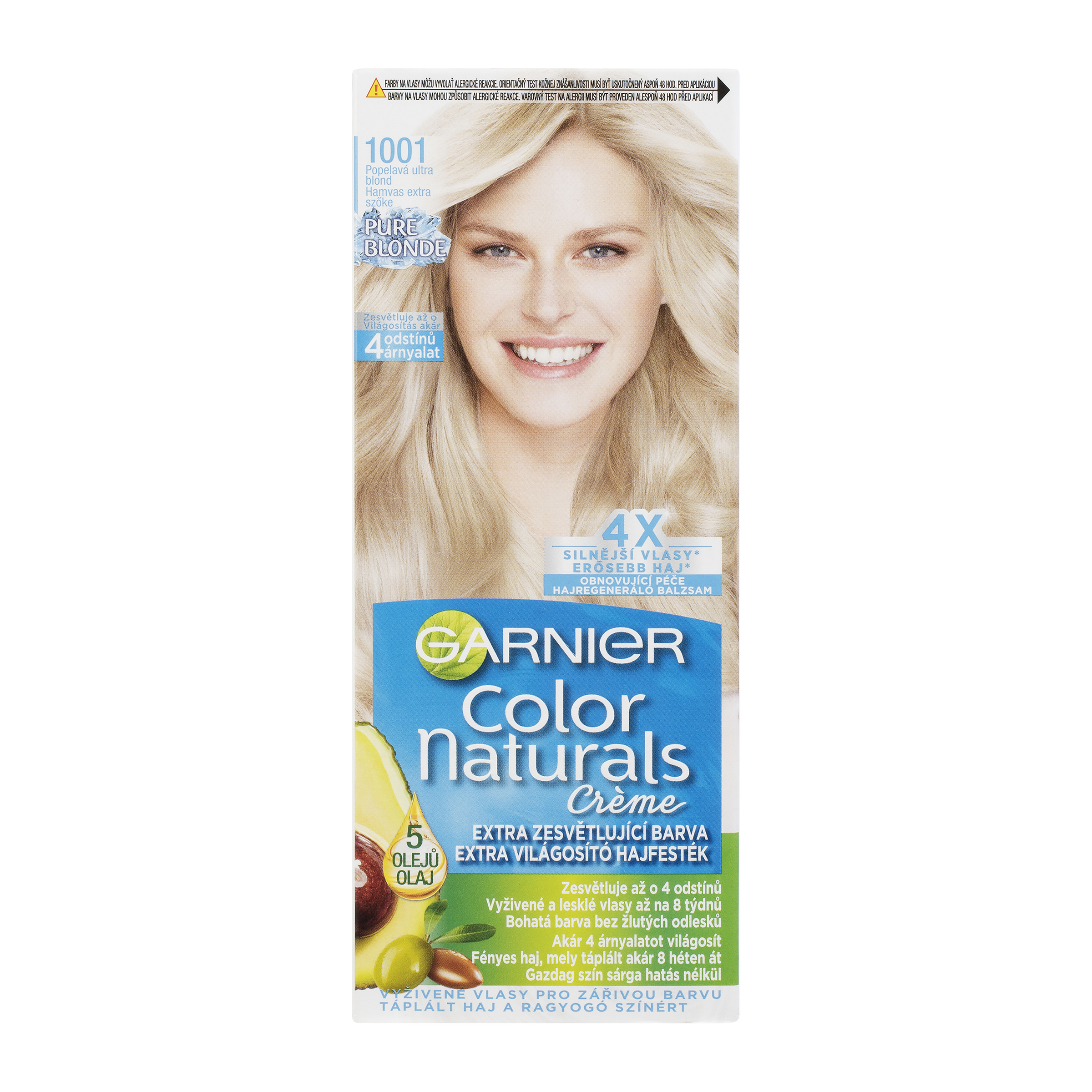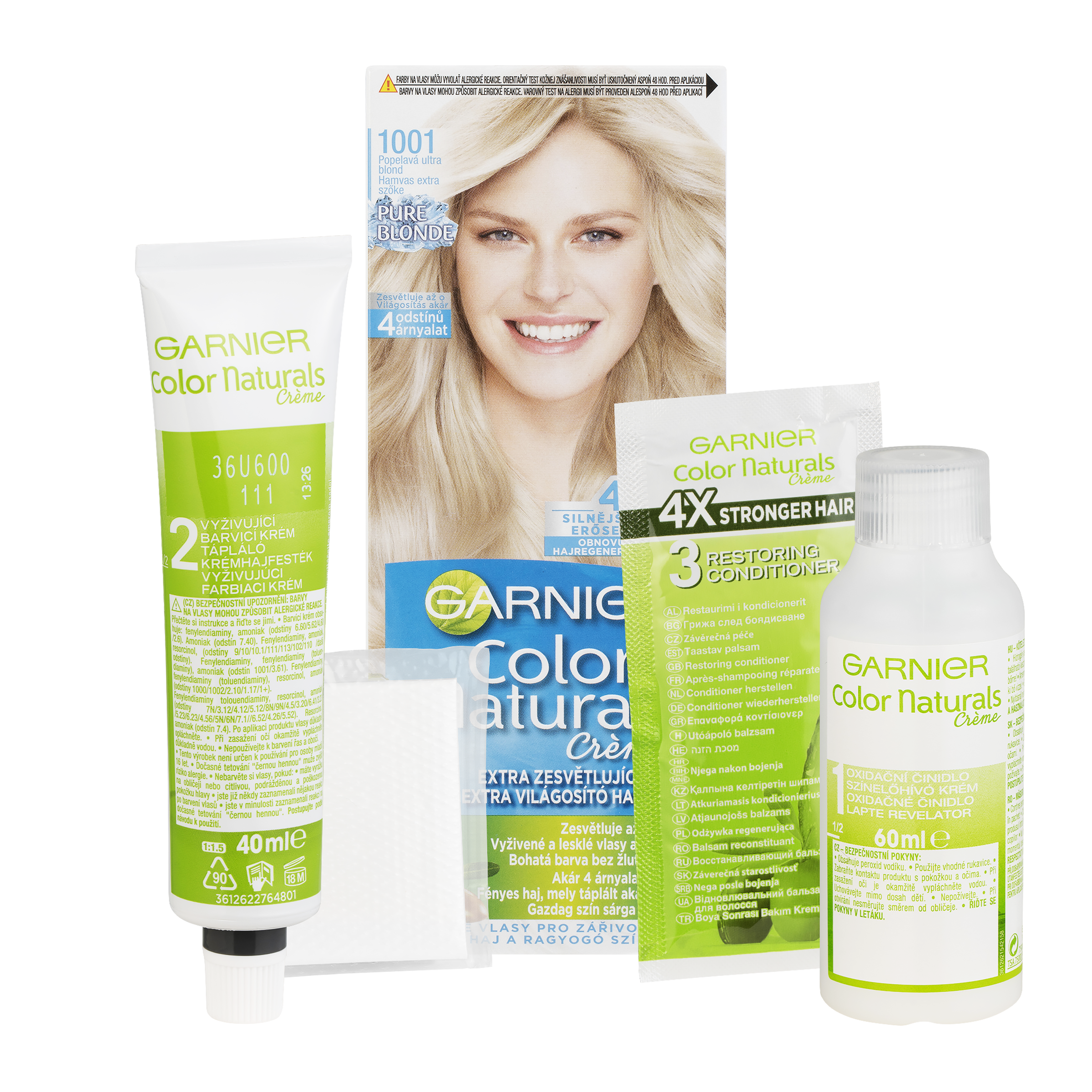 Barva na vlasy Garnier Color Naturals Crème je první vyživující permanentní barvou od Garnier se složením s dvojí ochranou. První je ochrana pro lesklejší a hebčí vlasy díky složení vyživující péče obohacené o 5 olejů – olivy, avokádo, karité, brusinky a argan. Péče intenzivně vyživuje vlasy, uhlazuje povrch vlasového vlákna a vytváří ochrannou vrstvu. Další je ochrana pro sytější a déle trvající barvu – krémové složení proniká do vlasových vláken a vyplňuje je sytou bohatou barvou. Díky závěrečné péči s 5 oleji je barva bohatá a dlouhotrvající. Výsledkem jsou 4x silnější vlasy, 100% krytí šedin a ochrana vlasů před vysušováním až na 8 týdnů, (*Instrumentální test). Zesvětlující barvy dokáží přirozeně odbarvit vlasy až o 4 odstíny. Studené pigmenty obsažené ve vybraných studených odstínech eliminují nežádoucí oranžové a žluté odlesky.