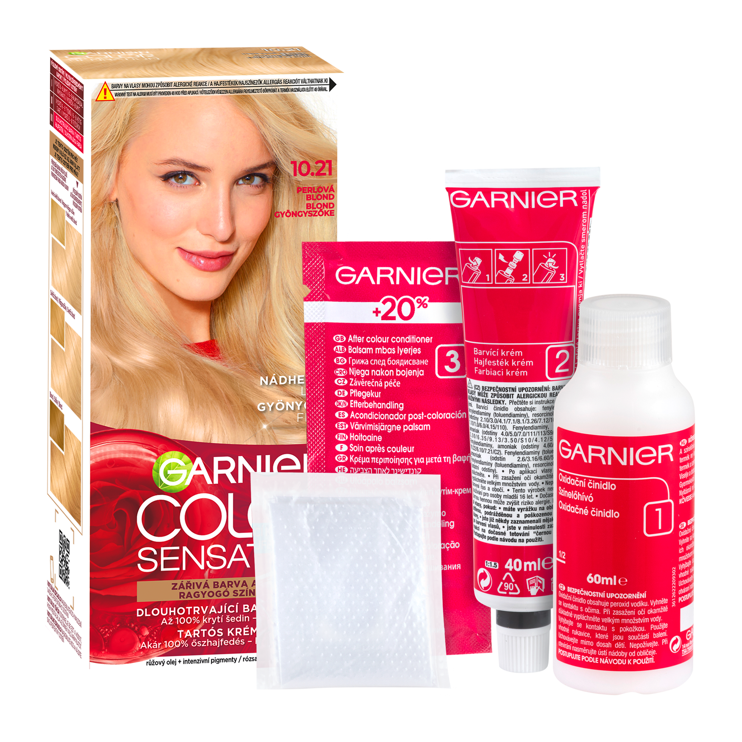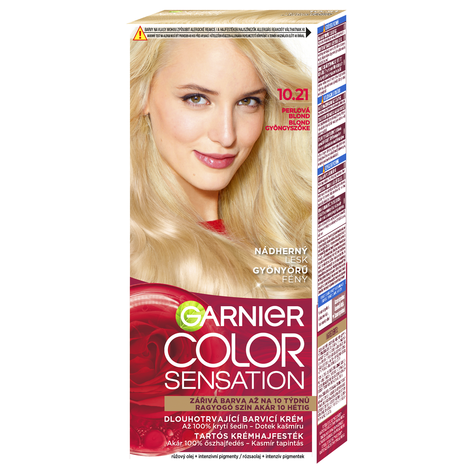 Garnier Color Sensation barva na vlasy s jemnou květinovou vůní 100% kryje šediny a vlasům dodá perleťový lesk. Nabízí intenzivní a dokonalé krytí s výjimečně výrazným barevným výsledkem a dlouhotrvajícím účinkem. Barevný odstín zůstává živý a zářivý. Barva na vlasy Garnier Color Sensation přináší dosud nejvyšší obsah účinných pigmentů a dlouhotrvající lesk.